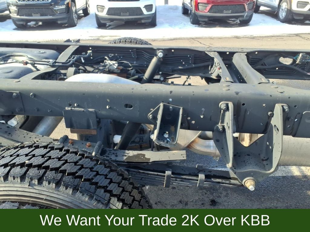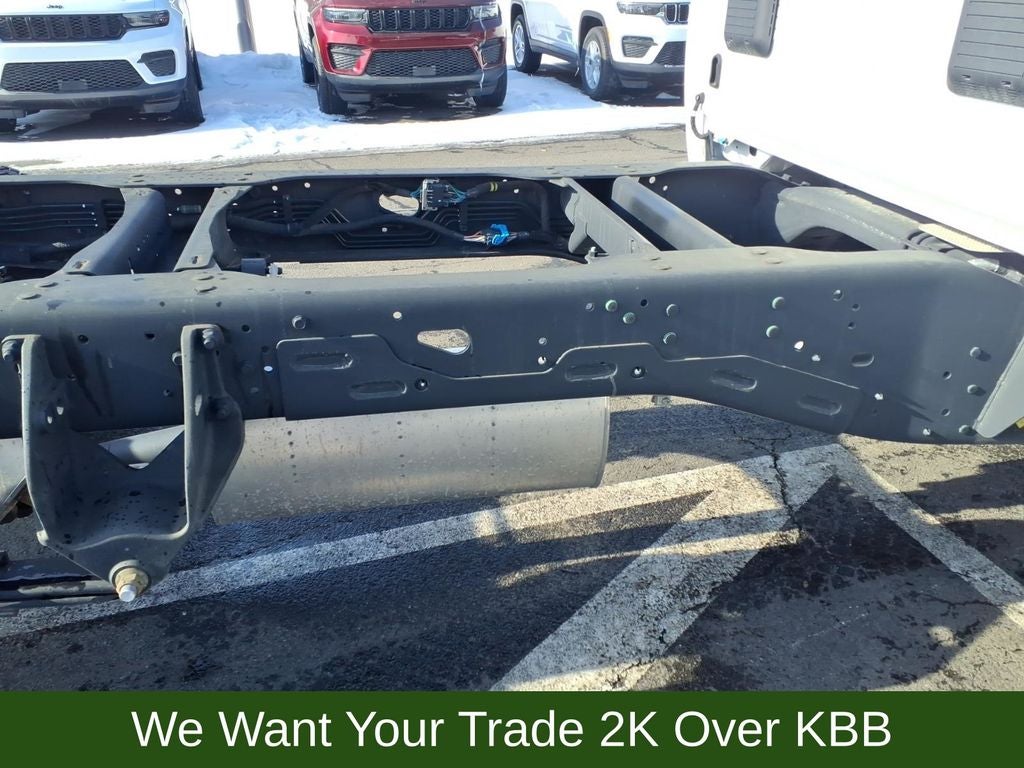 4 Speakers, 4-Wheel Disc Brakes, 4.44 Axle Ratio, 40/20/40 Split Bench Seat, 4G LTE Wi-Fi Hot Spot, ABS brakes, Adaptive Steering System, Air Conditioning, AM/FM radio: SiriusXM, Apple CarPlay, Apple CarPlay/Android Auto, Auto High Beam Headlamp Control, Black Exterior Mirrors, Black Power Heated Fold Telescope Mirrors, Cargo & CHMSL Lamp, CHMSL & DRVM Camera Relocation Kit, Compass, Connectivity - US/Canada, Delay-off headlights, Driver door bin, Drowsy Driver Detection, Dual front impact airbags, Dual rear wheels, Electronic Stability Control, Emergency communication system: RAM Connect, Engine Block Heater, Exterior Mirrors Courtesy Lamps, Exterior Mirrors w/Heating Element, Exterior Mirrors w/Supplemental Signals, For Details, Visit DriveUconnect.com, Front 1-Touch Down Power Windows, Front anti-roll bar, Front Armrest w/Cupholders, Front Center Armrest w/Storage, Front fog lights, Front License Plate Bracket, Front reading lights, Fully automatic headlights, Global Telematics Box Module (TBM), Google Android Auto, GPS Antenna Input, Integrated Voice Command w/Bluetooth®, Lane Keep Assist, Luxury Steering Wheel, Manual Adjust 4-Way Driver Seat, Manual Adjust 4-Way Front Passenger Seat, Manual Folding Exterior Mirrors, Manual Telescoping Mirrors, Mirror Running Lights, Occupant sensing airbag, Outside temperature display, Overhead console, ParkSense Front/Rear Park Assist System, ParkView Rear Back-Up Camera, Passenger door bin, Passenger vanity mirror, Power 2-Way Driver Lumbar Adjust, Power Adjust Mirrors, Power steering, Power Take-Off Right/Left, Power-Adjustable Convex Aux Mirrors, Quick Order Package 2XA Tradesman, Radio data system, Radio: Uconnect 5 w/8.4 Display, Rain Sensitive Windshield Wipers, Rear anti-roll bar, Rear Window Defroster, Red Seat Belts, Remote Keyless Entry, Remote USB Port - Charge Only, Safety Group, Security Alarm, Speed control, Speed Sensitive Power Locks, Tachometer, Temperature & Compass Gauge, Tilt steering wheel, Traction control, Tradesman Level 1 Equipment Group, Trailer Brake Control, Trailer Light Check, Upgraded Door Trim Panel, Variably intermittent wipers, Voltmeter, Wheels: 19.5 x 6.0 Black Painted Steel.