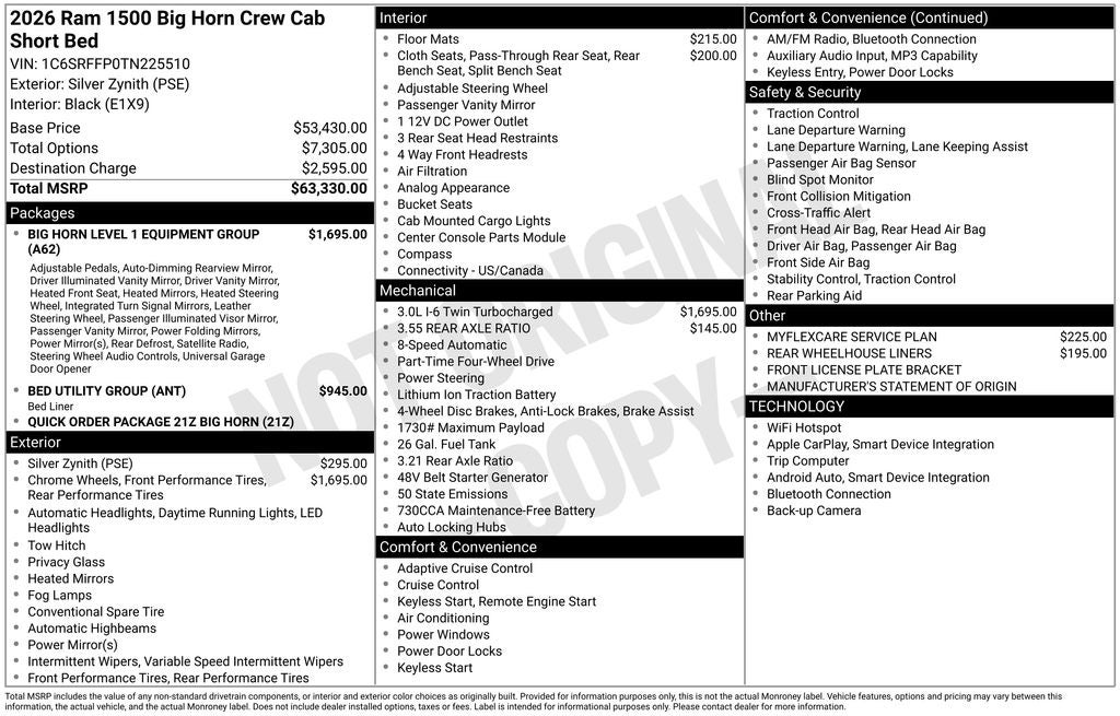 Max payload/towing estimate ratings shown. Additional options, equipment, passengers, and cargo weight may affect payload/towing weights. See dealer for details.