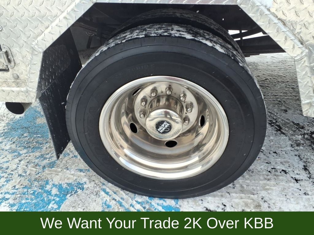 19.5 Argent Steel Wheels, 4 Speakers, 4-Wheel Disc Brakes, 4.88 Axle Ratio, ABS brakes, Air Conditioning, AM/FM radio, Bumpers: chrome, CD player, Cloth 40/20/40 Split Bench Seat, Driver door bin, Dual front impact airbags, Dual rear wheels, Front anti-roll bar, Front Center Armrest w/Storage, Front reading lights, GVWR: 16,000 lb Payload Package, Heated door mirrors, Passenger cancellable airbag, Passenger door bin, Passenger vanity mirror, Power door mirrors, Power steering, Power windows, Rear anti-roll bar, Speed control, Tachometer, Tilt steering wheel, Turn signal indicator mirrors, Variably intermittent wipers, Voltmeter.