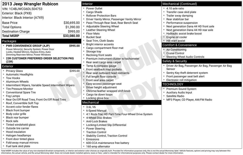 2013 Black Clearcoat Jeep Wrangler Rubicon 4WD 6-Speed Manual 3.6L V6 24V VVT