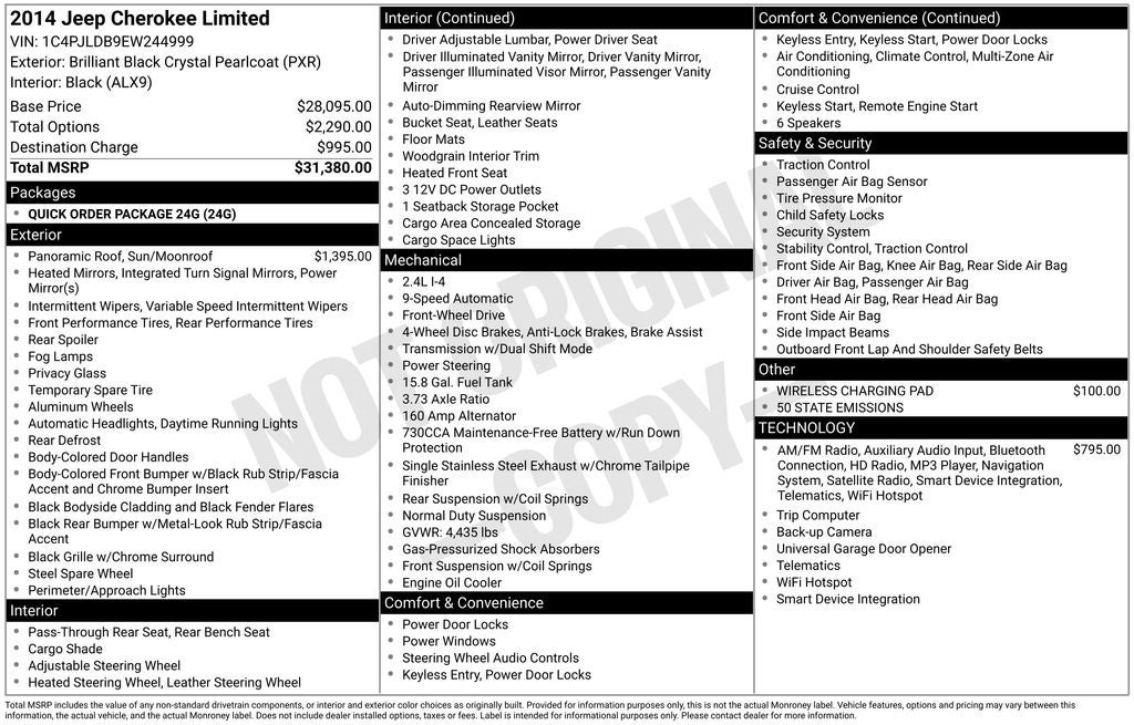 2014 Brilliant Black Crystal Pearlcoat Jeep Cherokee Limited FWD 9-Speed 948TE Automatic 22/31 City/Highway MPG 2.4L I4 MultiAir