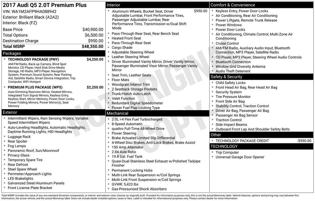 This 2017 Audi Q5 2.0T Premium Plus quattro is a true testament to Audi's commitment to excellence. Experience the perfect blend of performance, technology, and luxury by scheduling a test drive today. We're confident that this exceptional SUV will exceed your expectations and become an indispensable part of your driving experience.