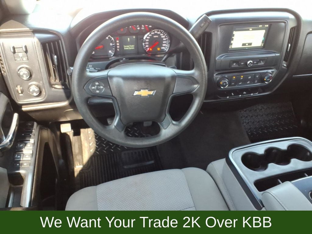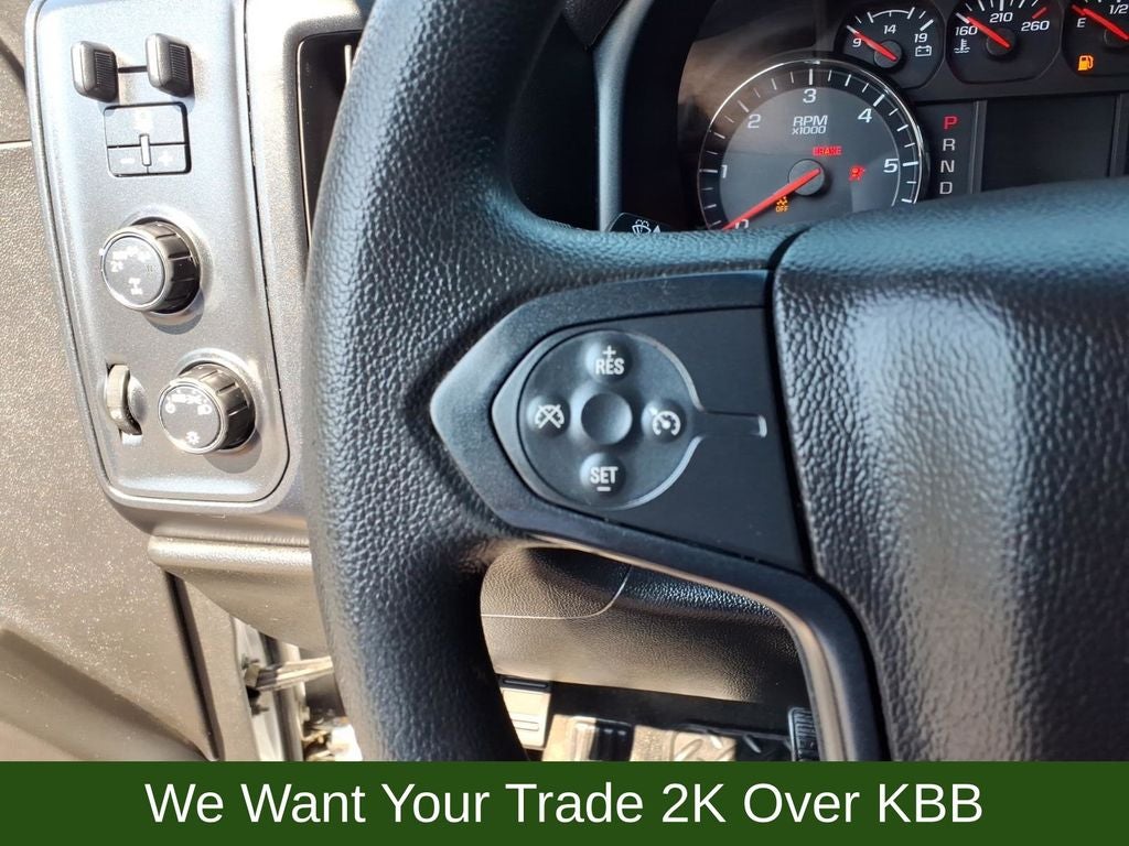 150 Amp Alternator, 20 x 9 Chrome Clad Aluminum Wheels, 3-Passenger Full-Width Folding Rear Bench Seat, 3.42 Rear Axle Ratio, 4-Wheel Disc Brakes, 40/20/40 Front Split Bench Seat, 6 Speaker Audio System, 6 Speakers, ABS brakes, Air Conditioning, Alloy wheels, AM/FM radio, Apple CarPlay/Android Auto, Black Power Adjustable Heated Outside Mirrors, Bluetooth® For Phone, Body Color Rear Bumper w/Cornersteps, Body-Color Grille Surround, Body-Color Headlamp Bezels, Brake assist, Bumpers: body-color, Cloth Seat Trim, Deep-Tinted Glass, Delay-off headlights, Driver door bin, Driver Information Center, Dual front impact airbags, Dual front side impact airbags, Electronic Stability Control, Front anti-roll bar, Front Body-Color Bumper, Front Center Armrest w/Storage, Front Frame-Mounted Black Recovery Hooks, Front reading lights, Front wheel independent suspension, Fully automatic headlights, Graphite-Colored Rubberized-Vinyl Floor Covering, Heated door mirrors, Heavy Duty Suspension, High-Intensity Discharge Headlights, Illuminated entry, Low tire pressure warning, Manual Tilt Wheel Steering Column, Occupant sensing airbag, Overhead airbag, Overhead console, Passenger door bin, Passenger vanity mirror, Power door mirrors, Power steering, Power windows, Power Windows w/Driver Express Up, Premium audio system: Chevrolet MyLink, Radio data system, Radio: AM/FM w/7 Diagonal Color Touch Screen, Rear reading lights, Rear step bumper, Silverado Custom Trim, Speed control, Speed-sensing steering, Tachometer, Tilt steering wheel, Traction control, Trip computer, Variably intermittent wipers, Voltmeter.