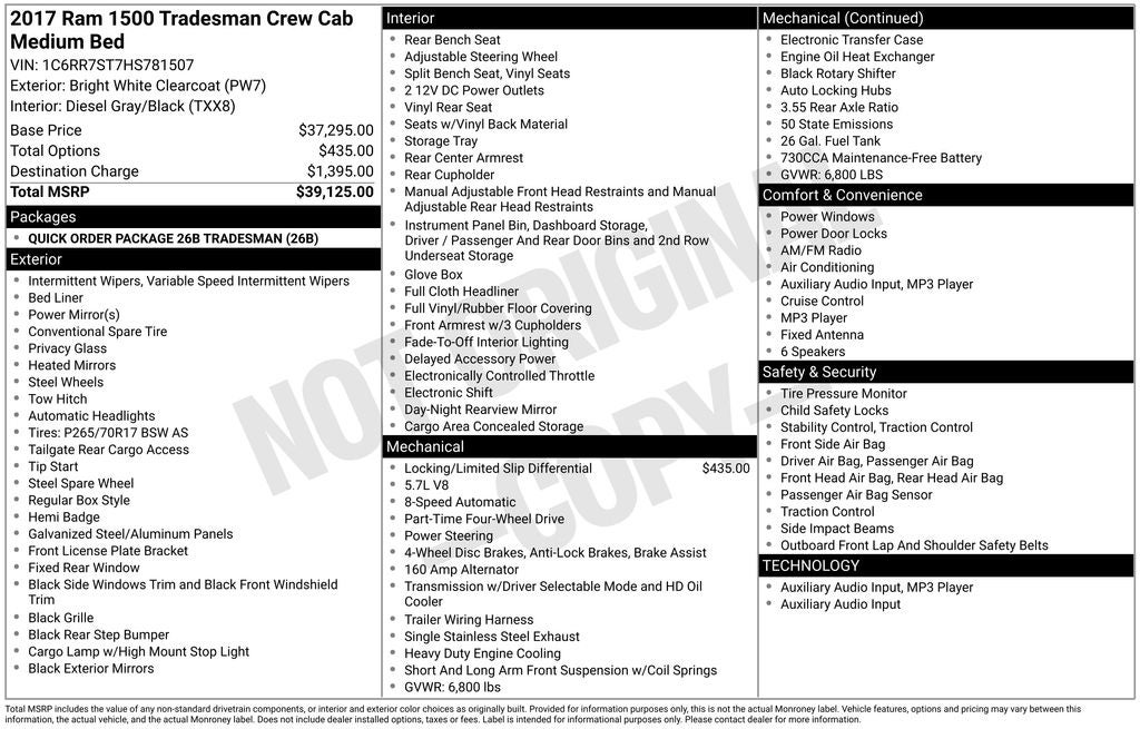 Whether you're hauling heavy loads, towing a trailer, or simply need a reliable daily driver, this 2017 Ram 1500 Tradesman is ready to take on the task. Come in and let us show you how this capable truck can make your life easier. We're confident you'll be impressed by its performance, features, and value.