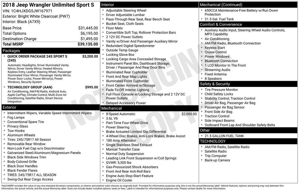 2018 Bright White Clearcoat Jeep Wrangler Unlimited Sport S 4WD 8-Speed Automatic 3.6L V6 24V VVT