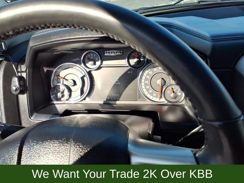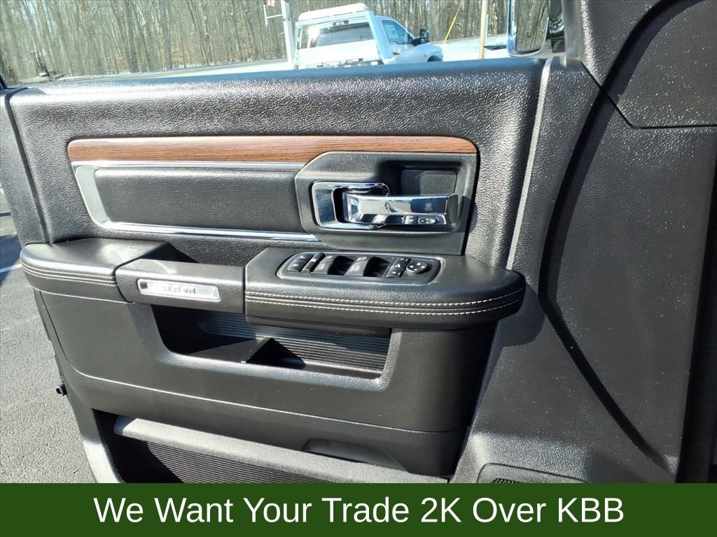 1-Year SiriusXM Guardian Trial, 10 Speakers, 115V Auxiliary Power Outlet, 4-Wheel Disc Brakes, 40/20/40 Split Bench Seat, 5-Year SiriusXM Traffic Service, 5-Year SiriusXM Travel Link Service, 8.4 Touchscreen Display, ABS brakes, Air Conditioning, Alloy wheels, AM/FM radio: SiriusXM, Anti-Spin Differential Rear Axle, Apple CarPlay/Android Auto, Audio memory, Auto High Beam Headlamp Control, Auto-dimming door mirrors, Auto-dimming Rear-View mirror, Automatic temperature control, Black Exterior Mirrors, Brake assist, Bumpers: chrome, Center Hub, Chrome Bodyside Molding, Chrome Exterior Mirrors, Chrome Tubular Side Steps, Clearance Lamps, Compass, Convenience Group, Delay-off headlights, Driver door bin, Driver vanity mirror, Dual front impact airbags, Dual front side impact airbags, Electronic Stability Control, Emergency communication system: SiriusXM Guardian, Exterior Mirrors Courtesy Lamps, Exterior Mirrors w/Heating Element, Exterior Mirrors w/Memory, Exterior Mirrors w/Supplemental Signals, Front anti-roll bar, Front Armrest w/Cupholders, Front Center Armrest w/Storage, Front dual zone A/C, Front fog lights, Front Performance Tuned Shock Absorbers, Front reading lights, Fully automatic headlights, Garage door transmitter, GPS Antenna Input, GPS Navigation, HD Radio, Heated door mirrors, Heated Front Seats, Heated front seats, Heated steering wheel, Illuminated entry, Integrated Center Stack Radio, Integrated Voice Command w/Bluetooth®, Keyless Enter-N-Go, Leather steering wheel, Leather Trim 40/20/40 Bench Seat, LED Bed Lighting, Low tire pressure warning, Media Hub (2 USB, AUX), Memory seat, Occupant sensing airbag, Off Road Package, Offroad Decal, Outside temperature display, Overhead airbag, Overhead console, Panic alarm, ParkView Rear Back-Up Camera, Passenger door bin, Passenger vanity mirror, Power Adjustable Pedals w/Memory, Power door mirrors, Power driver seat, Power Folding Chrome Trailer Tow Mirrors, Power Folding Mirrors, Power passenger seat, Power steering, Power Sunroof, Power windows, Quick Order Package 2FH Laramie, Radio data system, Radio: Uconnect 4C Nav w/8.4 Display, Radio: Uconnect 4C w/8.4 Display, Radio/Driver Seat/Mirrors/Pedals Memory, Rain Sensitive Windshield Wipers, Rear Performance Tuned Shock Absorbers, Rear seat center armrest, Rear step bumper, Rear Window Defroster, Remote keyless entry, Remote Proximity Keyless Entry, Remote Start System, Security system, Single Disc Remote CD Player, SiriusXM Satellite Radio, SiriusXM Traffic Plus, SiriusXM Travel Link, Speed control, Split folding rear seat, Spray In Bedliner, Steering wheel mounted audio controls, Tachometer, Tilt steering wheel, Tow Hooks, Traction control, Trailer Tow Mirrors, Trip computer, Turn signal indicator mirrors, Variably intermittent wipers, Vendor Painted Cargo Box Tracking, Ventilated front seats, Voltmeter, Wheels: 18 x 8.0 Polished Aluminum, Wheels: 20 x 8.0 Painted Aluminum w/Chrome Inserts.