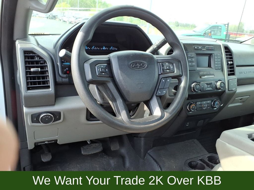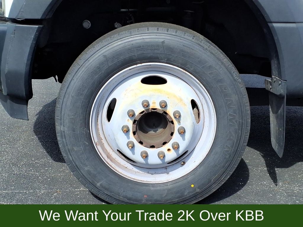 4 Speakers, 4-Wheel Disc Brakes, 6-Ton Hydraulic Jack, ABS brakes, Air Conditioning, AM/FM radio, AM/FM Stereo, Brake assist, Delay-off headlights, Dual front impact airbags, Dual front side impact airbags, Dual rear wheels, Engine Block Heater, Front anti-roll bar, Front Center Armrest w/Storage, Front reading lights, Fully automatic headlights, GVWR: 16,000 lb Payload Package, GVWR: 16,500 lb Payload Package, HD Vinyl 40/20/40 Split Bench Seat, Order Code 650A, Outside temperature display, Overhead airbag, Passenger cancellable airbag, Passenger vanity mirror, Power steering, Radio: AM/FM Stereo/MP3 Player, Rear anti-roll bar, SYNC Communications & Entertainment System, Tachometer, Telescoping steering wheel, Tilt steering wheel, Traction control, Trip computer, Variably intermittent wipers, Wheels: 19.5 Argent Painted Steel.