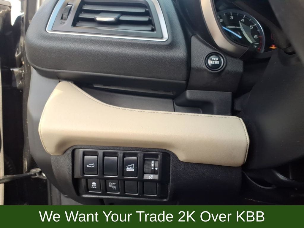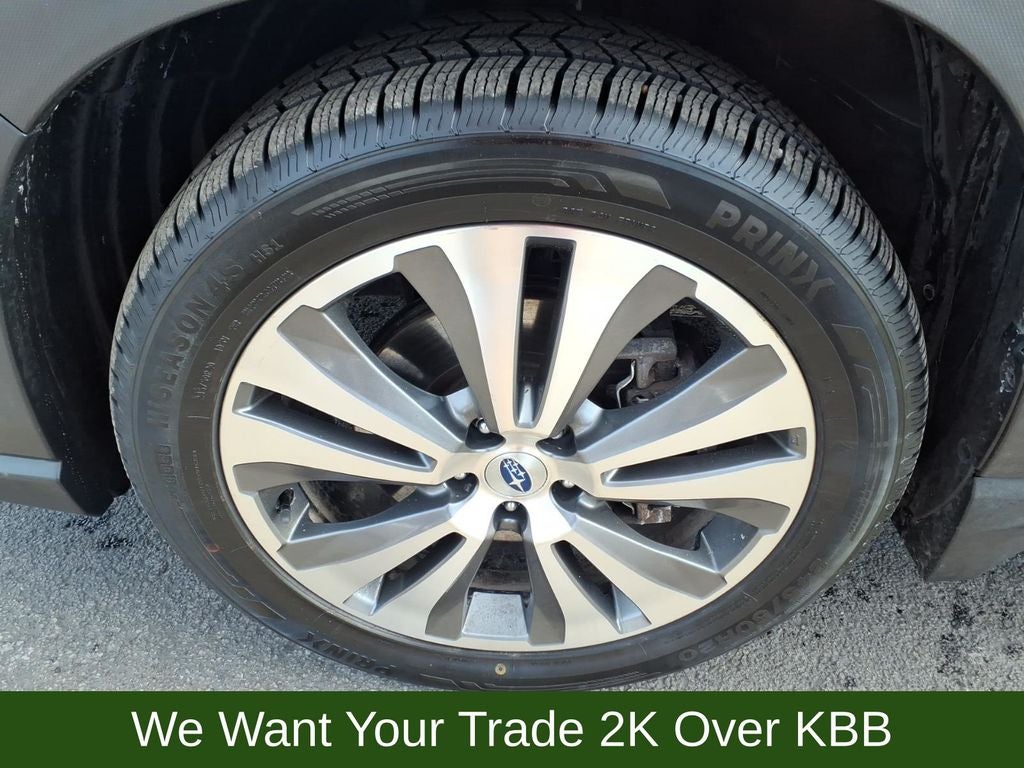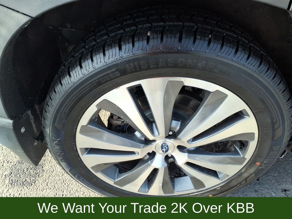 20 Alloy Wheels, 3rd row seats: bench, 4-Wheel Disc Brakes, 6 Speakers, ABS brakes, Air Conditioning, All-Weather Floor Liners, Alloy wheels, AM/FM radio: SiriusXM, Auto High-beam Headlights, Auto-Dimming Exterior Mirror w/Approach Light, Auto-dimming Rear-View mirror, Automatic temperature control, Axle Ratio: 4.44, Brake assist, Bumpers: body-color, Cargo Area Cover, Cargo Tray, CD player, Compass, Delay-off headlights, Driver door bin, Driver vanity mirror, Dual front impact airbags, Dual front side impact airbags, Dual Glass Panoramic Power Moonroof, Electronic Stability Control, Emergency communication system: STARLINK Safety and Security, Exterior Parking Camera Rear, Four wheel independent suspension, Front anti-roll bar, Front Bucket Seats, Front Center Armrest, Front dual zone A/C, Front fog lights, Front reading lights, Fully automatic headlights, Garage door transmitter: HomeLink, harman kardon & Moonroof & Nav & Cargo Area Cover, Heated door mirrors, Heated Front Bucket Seats, Heated front seats, Heated rear seats, Heated steering wheel, Illuminated entry, Knee airbag, Low tire pressure warning, Memory seat, Occupant sensing airbag, Outside temperature display, Overhead airbag, Overhead console, Panic alarm, Passenger door bin, Passenger vanity mirror, Perforated Leather-Trimmed Upholstery, Popular Package #2, Power door mirrors, Power driver seat, Power Liftgate, Power passenger seat, Power steering, Power windows, Radio data system, Radio: Subaru STARLINK 8.0 Multimedia Nav System, Radio: Subaru STARLINK 8.0 Multimedia Plus System, Rear air conditioning, Rear anti-roll bar, Rear Bumper Cover, Rear reading lights, Rear Seatback Protector, Rear window defroster, Rear window wiper, Remote keyless entry, Roof rack: rails only, Security system, Speed control, Splash Guards, Split folding rear seat, Spoiler, STARLINK/Apple CarPlay/Android Auto, Steering wheel mounted audio controls, Tachometer, Telescoping steering wheel, Tilt steering wheel, Traction control, Trailer Hitch, Trip computer, Variably intermittent wipers.