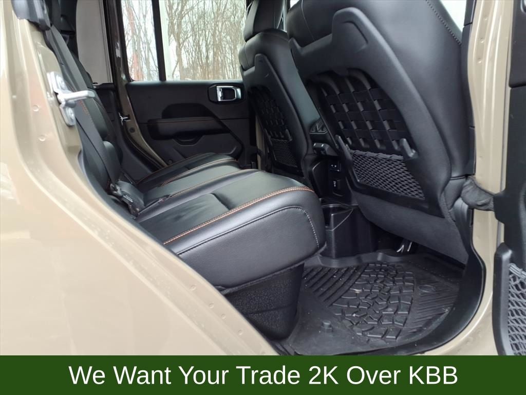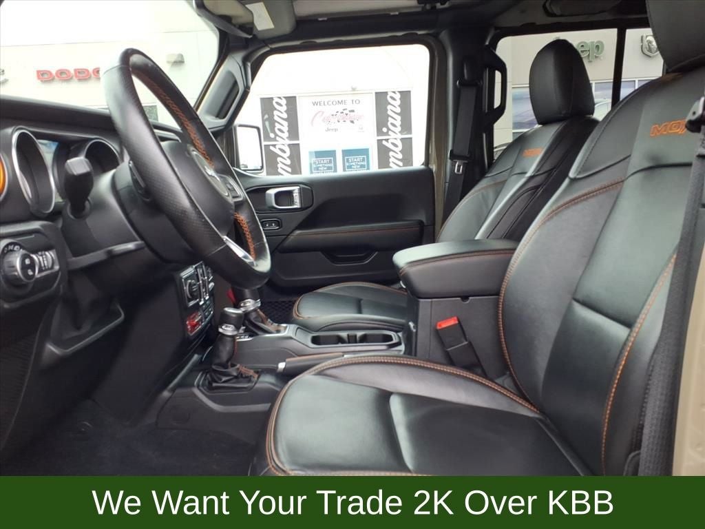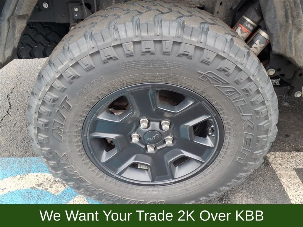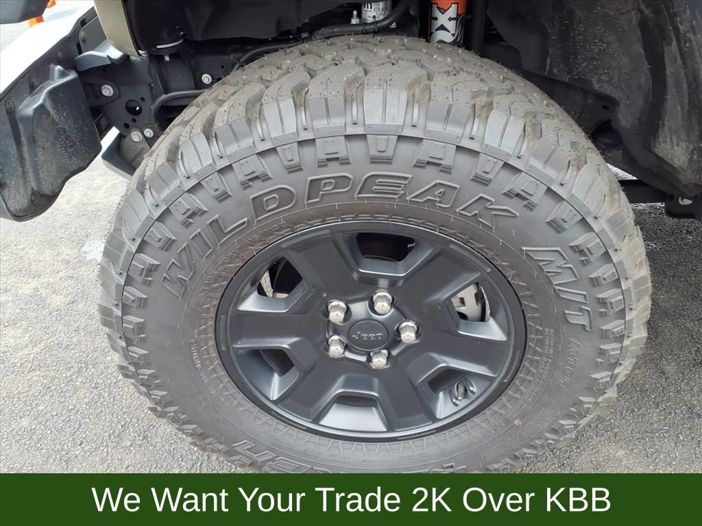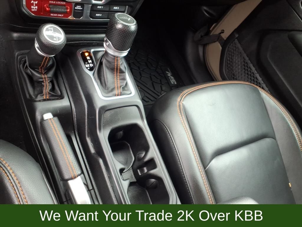 1-Year SiriusXM Guardian Trial, 240 Amp Alternator, 4-Wheel Disc Brakes, 4.10 Rear Axle Ratio, 5-Year SiriusXM Traffic Service, 5-Year SiriusXM Travel Link Service, 700 Amp Maintenance Free Battery, 8 Speakers, 8.4 Radio & Premium Audio Group, 97 mph Maximum Speed Calibration, ABS brakes, Air Conditioning, Alloy wheels, Alpine Premium Audio System, AM/FM radio: SiriusXM, Apple CarPlay/Android Auto, Auto-Dimming Rear-View Mirror, Automatic temperature control, Auxiliary Switch Group, Auxiliary Switches, Black 3-Piece Hard Top, Body Color Fender Flares (2-Piece), Brake assist, Cold Weather Group, Compass, Daytime Running Lamps LED Accents, Delay-off headlights, Driver door bin, Driver vanity mirror, Dual front impact airbags, Dual front side impact airbags, Electronic Stability Control, Emergency/Assistance Call, For Details, Visit DriveUconnect.com, Freedom Panel Storage Bag, Front anti-roll bar, Front Bucket Seats, Front Center Armrest w/Storage, Front dual zone A/C, Front fog lights, Front LED Fog Lamps, Front reading lights, Fully automatic headlights, Garage door transmitter, HD Radio, Heated door mirrors, Heated Front Seats, Heated Steering Wheel, Heavy Duty Suspension w/Gas Shocks, Illuminated entry, Integrated Off-Road Camera, Integrated roll-over protection, Leather steering wheel, LED Lighting Group, LED Park Turn Lamps, LED Reflector Headlamps, LED Taillamps, Low tire pressure warning, No Soft Top, Occupant sensing airbag, Outside temperature display, Panic alarm, ParkView Rear Back-Up Camera, Passenger door bin, Passenger vanity mirror, Power door mirrors, Power steering, Power windows, Premium Cloth Seats w/Sport Bolsters, Quick Order Package 24D, Radio data system, Radio: Uconnect 4 w/7 Display, Radio: Uconnect 4C Nav w/8.4 Display, Rear anti-roll bar, Rear reading lights, Rear Sliding Window, Rear Window Defroster, Remote keyless entry, Remote Proximity Keyless Entry, Remote Start System, Security system, SiriusXM Traffic Plus, SiriusXM Travel Link, Speed control, Split folding rear seat, Spray In Bedliner, Steering wheel mounted audio controls, Tachometer, Telescoping steering wheel, Tilt steering wheel, Traction control, Trip computer, Variably intermittent wipers, Voltmeter, Wheels: 17 x 7.5 Low Gloss Black Aluminum.
