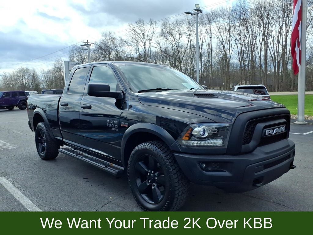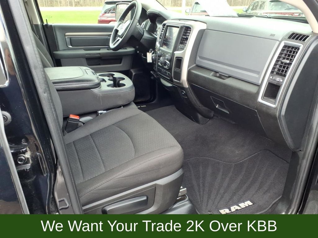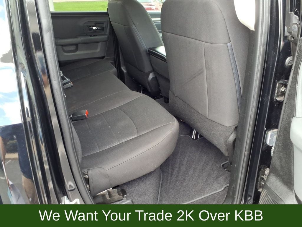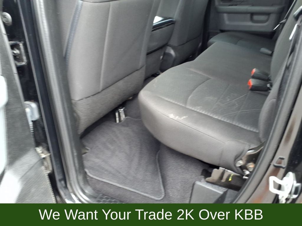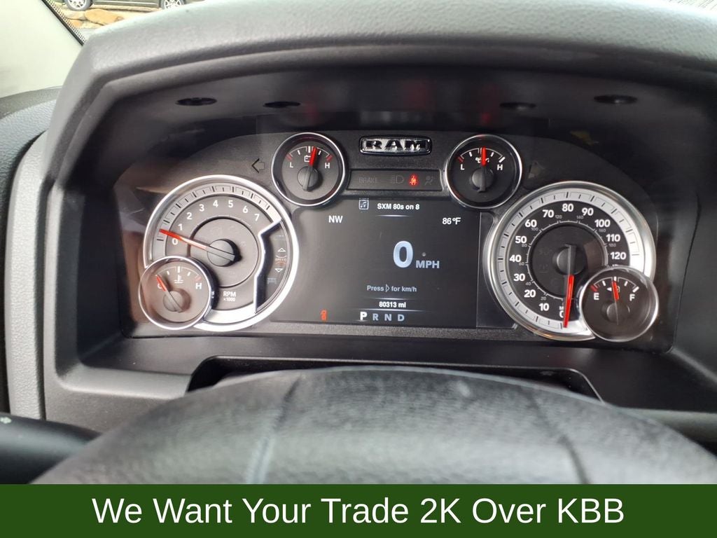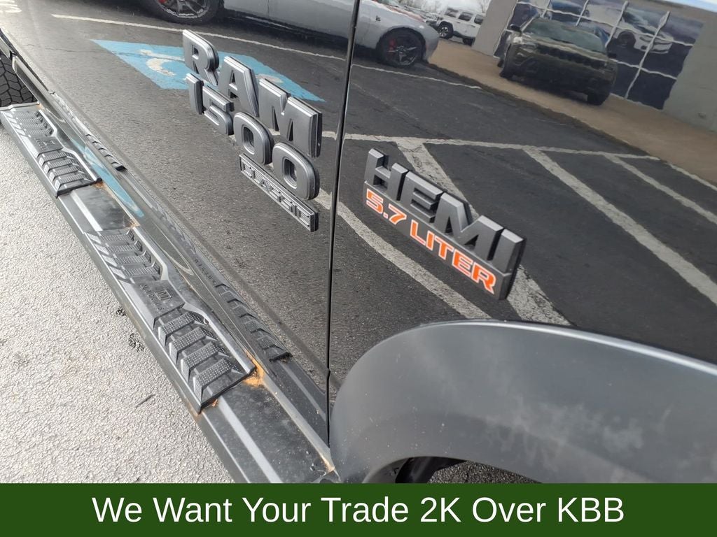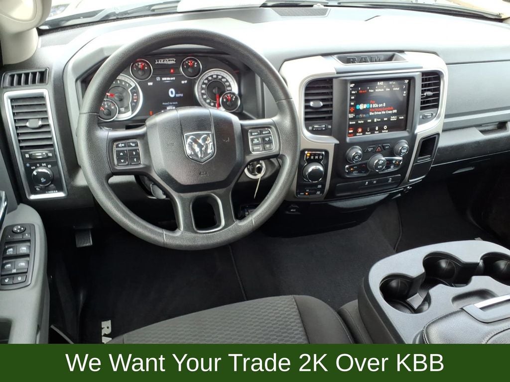 1-Year SiriusXM Guardian Trial, 17 x 7 Aluminum Wheels, 3.21 Rear Axle Ratio, 4-Wheel Disc Brakes, 40/20/40 Split Bench Seat, 6 Speakers, 8.4 Touchscreen Display, ABS brakes, Active Grille Shutters, Air Conditioning, Air Conditioning ATC w/Dual Zone Control, Alloy wheels, AM/FM radio: SiriusXM, Apple CarPlay, Bi-Function Halogen Projector Headlamps, Black Door Handles, Black Exterior Mirrors, Black Exterior Truck Badging, Black RAM Head Tailgate Badge, Brake assist, Bumpers: chrome, Charge Only Remote USB Port, Cloth 40/20/40 Bench Seat, Cluster 7.0 TFT Color Display, Compass, Delay-off headlights, Delete All Decals, Driver door bin, Dual front impact airbags, Dual front side impact airbags, Dual Rear Exhaust w/Bright Tips, Electronic Shift, Electronic Stability Control, Electronics Group, Exterior Mirrors w/Heating Element, Front anti-roll bar, Front Armrest w/3 Cupholders, Front Center Armrest w/Storage, Front LED Fog Lamps, Front reading lights, Front wheel independent suspension, Fully automatic headlights, Google Android Auto, GPS Antenna Input, HD Radio, Heated door mirrors, Humidity Sensor, Illuminated entry, Integrated Voice Command w/Bluetooth®, Low tire pressure warning, Media Hub (2 USB, AUX), Occupant sensing airbag, Outside temperature display, Overhead airbag, Overhead console, Panic alarm, ParkSense Rear Park Assist System, ParkView Rear Back-Up Camera, Passenger door bin, Passenger vanity mirror, Power door mirrors, Power steering, Power windows, Quick Order Package 26F Warlock, Radio data system, Radio: Uconnect 3 w/5 Display, Radio: Uconnect 4C w/8.4 Display, Rear anti-roll bar, Rear Extra HD Shock Absorbers, Rear Floor Mats, Rear step bumper, Remote keyless entry, Semi-Gloss Black Hub, SiriusXM Satellite Radio, Speed control, Sport Performance Hood, Sport Tail Lamps, Tachometer, Tilt steering wheel, Tip Start, Tow Hooks, Traction control, Trip computer, USB Host Flip, Variably intermittent wipers, Voltmeter, Warlock, Warlock Decal, Wheels: 20 x 8 Semi-Gloss Black Aluminum.