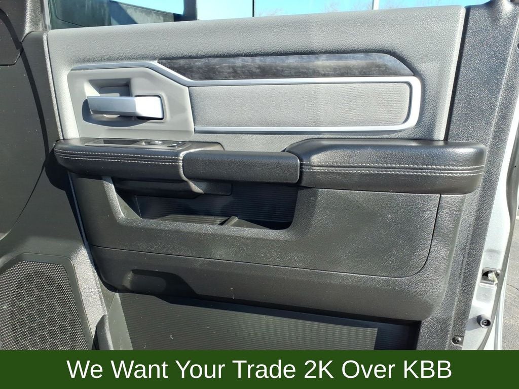 115V Auxiliary Front Power Outlet, 2 Way Rear Headrest Seat, 220 Amp Alternator, 2nd Row In Floor Storage Bins, 3.73 Axle Ratio, 4 Way Front Headrests, 4-Wheel Disc Brakes, 40/20/40 Split Bench Seat, 400W Inverter, 6 Speakers, 8.4 Touchscreen Display, ABS brakes, Active Noise Control System, Air Conditioning, AM/FM radio, Anti-Spin Differential Rear Axle, Apple CarPlay, Auto-Dimming Rear-View Mirror, Black Vinyl Floor Covering, Brake assist, Bumpers: chrome, Center Hub, Center Stack Storage Drawer, Clearance Lamps, Cloth 40/20/40 Bench Seat, Cluster 3.5 TFT Color Display, Cold Weather Group, Compass, Delay-off headlights, Driver door bin, Dual front impact airbags, Dual front side impact airbags, Dual Glove Boxes, Electronic Stability Control, Electronically Controlled Throttle, Engine Block Heater, Foam Bottle Insert (Door Trim Panel), Folding Flat Load Floor Storage, Footwell Courtesy Lamp, For More Info, Call 800-643-2112, Front & Rear Rubber Floor Mats, Front anti-roll bar, Front Armrest w/Cupholders, Front Center Armrest w/Storage, Front Center Seat Cushion Storage, Front Fog Lamps, Front reading lights, Front Seat Back Map Pockets, Fully automatic headlights, Glove Box Lamp, Google Android Auto, GPS Antenna Input, Heated door mirrors, I/P Mounted Auxiliary Switches, Illuminated entry, Integrated Center Stack Radio, Integrated Voice Command w/Bluetooth®, Leather Wrapped Steering Wheel, Level 1 Equipment Group, Locking Lower Glove Box, Low tire pressure warning, Manual Adjust 4-Way Driver Seat, Manual Adjust 4-Way Front Passenger Seat, Manufacturer's Statement of Origin, Occupant sensing airbag, Outside temperature display, Overhead airbag, Overhead console, Panic alarm, ParkView Rear Back-Up Camera, Passenger door bin, Passenger vanity mirror, Power 2-Way Driver Lumbar Adjust, Power Adjust 8-Way Driver Seat, Power Adjust/Fold & Heated Black Tow Mirrors, Power Adjustable Pedals, Power door mirrors, Power Folding Mirrors, Power steering, Power windows, Premium Cloth 40/20/40 Bench Seat, Protection Group, Quick Order Package 2HZ Big Horn, Radio data system, Radio: Uconnect 3 w/5 Display, Radio: Uconnect 4 w/8.4 Display, Rear 60/40 Folding Seat, Rear anti-roll bar, Rear Dome w/On/Off Switch Lamp, Rear Folding Seat, Rear seat center armrest, Rear step bumper, Remote keyless entry, Remote Start System, SiriusXM Radio Service, SiriusXM Satellite Radio, Snow Chief Group, Speed control, Steering Wheel Mounted Audio Controls, Sun Visors w/Illuminated Vanity Mirrors, Tachometer, Tilt steering wheel, Tip Start, Tow Hooks, Traction control, Trip computer, Turn signal indicator mirrors, Universal Garage Door Opener, USB Host Flip, Variably intermittent wipers, Voltmeter, Wheels: 18 x 8.0 Polished Aluminum, Wheels: 18 x 8.0 Steel Chrome Clad, Winter Front Grille Cover.