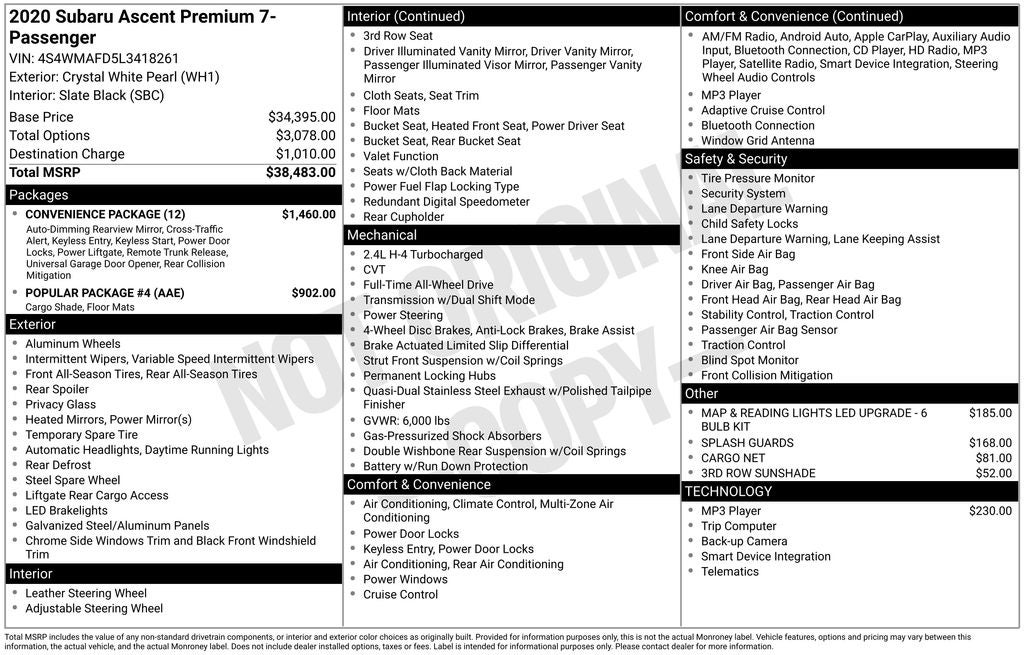 - Vehicle Name: Subaru Ascent