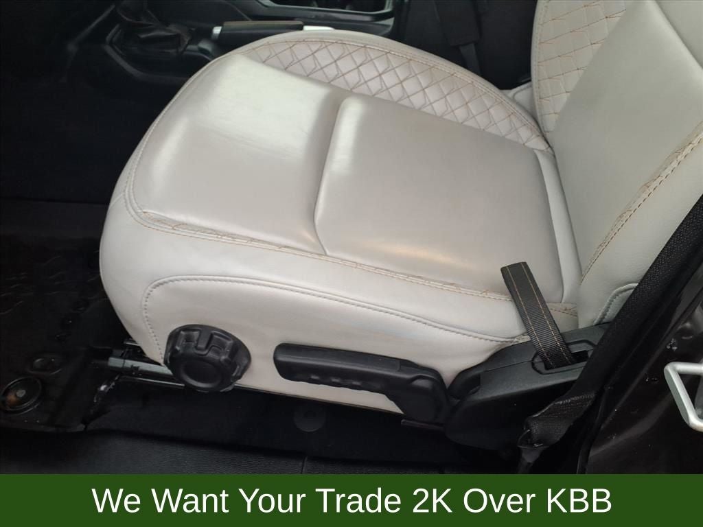 3.73 Rear Axle Ratio, 4-Wheel Disc Brakes, 7 & 4 Pin Wiring Harness, 700 Amp Maintenance Free Battery, 9 Speakers, ABS brakes, Air Conditioning, Alloy wheels, AM/FM radio, Anti-Spin Differential Rear Axle, Apple CarPlay/Android Auto, Auto-dimming Rear-View mirror, Automatic temperature control, Auxiliary Switches, Blind Spot & Cross Path Detection, Blue Tow Hooks, Body Color 3-Piece Hard Top, Body Color Door Handles, Body Color Exterior Mirrors, Body Color Front Bumper, Body Color Grille w/Gloss Black Rings, Body Color Power Locking Fuel Filler Door, Body Color Rear Bumper w/Step Pads, Brake assist, Caramel Interior Accents, Cargo Compartment Floor Mat, Class II Receiver Hitch, Cold Weather Group, Compass, Delay-off headlights, Driver door bin, Driver vanity mirror, Dual front impact airbags, Dual front side impact airbags, Electronic Stability Control, Emergency communication system: SiriusXM Guardian, Freedom Panel Storage Bag, Front anti-roll bar, Front Bucket Seats, Front Center Armrest w/Storage, Front dual zone A/C, Front fog lights, Front License Plate Bracket, Front reading lights, Fully automatic headlights, Garage door transmitter, Heated door mirrors, Heated Front Seats, Heated Steering Wheel, High Altitude Package, Illuminated entry, Integrated roll-over protection, Leather Shift Knob, Leather steering wheel, Leather Trimmed Bucket Seats, Leather Trimmed Seats w/Sahara Logo, Leather Wrapped Park Brake Handle, Low tire pressure warning, Manufacturer's Statement of Origin, MOPAR All-Weather Floor Mats (DISC), MOPAR Windshield Tie Down, Navigation System, Occupant sensing airbag, Outside temperature display, Panic alarm, ParkSense Rear Park Assist System, ParkView Rear Back-Up Camera, Passenger door bin, Passenger vanity mirror, Power door mirrors, Power steering, Power windows, Premium Dark Exterior Accents, Quick Order Package 29N High Altitude, Radio data system, Radio: Uconnect 4C Nav w/8.4 Display, Rear anti-roll bar, Rear reading lights, Rear seat center armrest, Rear Window Defroster, Rear Window Wiper/Washer, Remote keyless entry, Remote Proximity Keyless Entry, Remote Start System, Safety Group, Security system, Speed control, Split folding rear seat, Sport Suspension, Steering wheel mounted audio controls, Summit Badging, Tachometer, Telescoping steering wheel, Tilt steering wheel, Traction control, Trail Rail Management System, Trailer Tow & HD Electrical Group, Trip computer, Variably intermittent wipers, Voltmeter, Wheels: 20 x 8 Fully Painted Aluminum, Wrapped I/P Bezel w/Caramel Stitch.