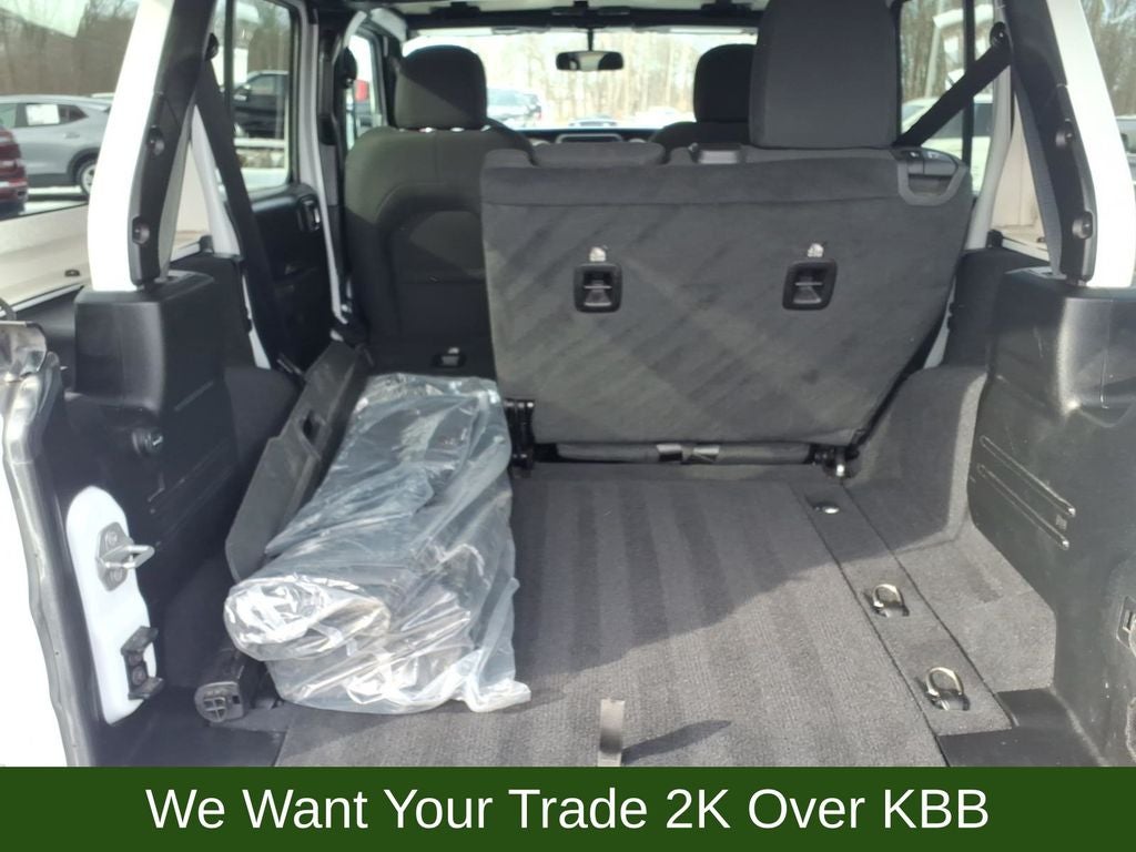 240 Amp Alternator, 4-Wheel Disc Brakes, 7 & 4 Pin Wiring Harness, 7.0 Touchscreen Display, 700 Amp Maintenance Free Battery, 8 Speakers, ABS brakes, Air Conditioning, Air Conditioning w/Auto Temperature Control, Air Filtering, AM/FM radio, Anti-Spin Differential Rear Axle, Apple CarPlay, Automatic Headlamps, Aux Battery, Auxiliary Switches, Black 3-Piece Hard Top, Brake assist, Class II Receiver Hitch, Cloth Low-Back Bucket Seats, Cluster 7.0 TFT Color Display, Compass, Convenience Group, Deep Tint Sunscreen Windows, Delay-off headlights, Driver door bin, Driver vanity mirror, Dual front impact airbags, Dual front side impact airbags, Electronic Stability Control, For More Info, Call 800-643-2112, Freedom Panel Storage Bag, Front 1-Touch Down Power Windows, Front anti-roll bar, Front Bucket Seats, Front Center Armrest w/Storage, Front fog lights, Front reading lights, Glass Window Material, Google Android Auto, GPS Antenna Input, Integrated Center Stack Radio, Integrated roll-over protection, Leather Wrapped Steering Wheel, Low tire pressure warning, No Soft Top, Non-Lock Fuel Cap w/o Discriminator, Normal Duty Suspension, Occupant sensing airbag, Outside temperature display, ParkView Rear Back-Up Camera, Passenger door bin, Passenger vanity mirror, Power Heated Mirrors, Power steering, Quick Order Package 26S Sport S, Radio data system, Radio: Uconnect 3 w/5 Display, Radio: Uconnect 4 w/7 Display, Rear anti-roll bar, Rear reading lights, Rear Window Defroster, Rear Window Wiper/Washer, Remote Keyless Entry, Security Alarm, Side Steps, SiriusXM Radio Service, SiriusXM Satellite Radio, Speed control, Speed Sensitive Power Locks, Split folding rear seat, Sport S, Steering wheel mounted audio controls, Stop-Start Dual Battery System, Sun Visors w/Illuminated Vanity Mirrors, Tachometer, Technology Group, Telescoping steering wheel, Tilt steering wheel, Traction control, Trailer Tow & HD Electrical Group, Trip computer, Universal Garage Door Opener, USB Host Flip, Variably intermittent wipers, Wheels: 17 x 7.5 Black Steel Styled, Wheels: 17 x 7.5 Tech Silver Aluminum.