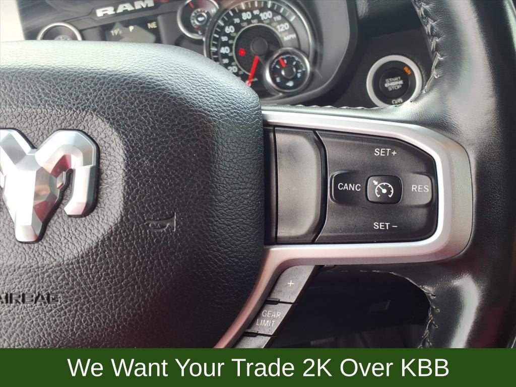 4G LTE Wi-Fi Hot Spot, 6 Speakers, Air Conditioning, Alloy wheels, AM/FM radio, Auto-Dimming Exterior Driver Mirror, Black Premium Power Mirrors, Blind Spot & Cross Path Detection, Body Color Exterior Mirrors, Cluster 3.5 TFT Color Display, Delay-off headlights, Front fog lights, Fully automatic headlights, GPS Antenna Input, Leather steering wheel, LED Taillamps, MOPAR Front & Rear Rubber Floor Mats, MOPAR Lockable Console Storage, ParkView Rear Back-Up Camera, Power steering, Power windows, Quick Order Package 27Z Big Horn, Radio data system, Radio: Uconnect 3 w/5 Display, Rear 60/40 Folding Seat, Remote keyless entry, Steering wheel mounted audio controls, Traction control, Wheels: 18 x 8 Premium Paint Cast (DISC), Wheels: 20 x 9.0 Premium Paint/Polished.