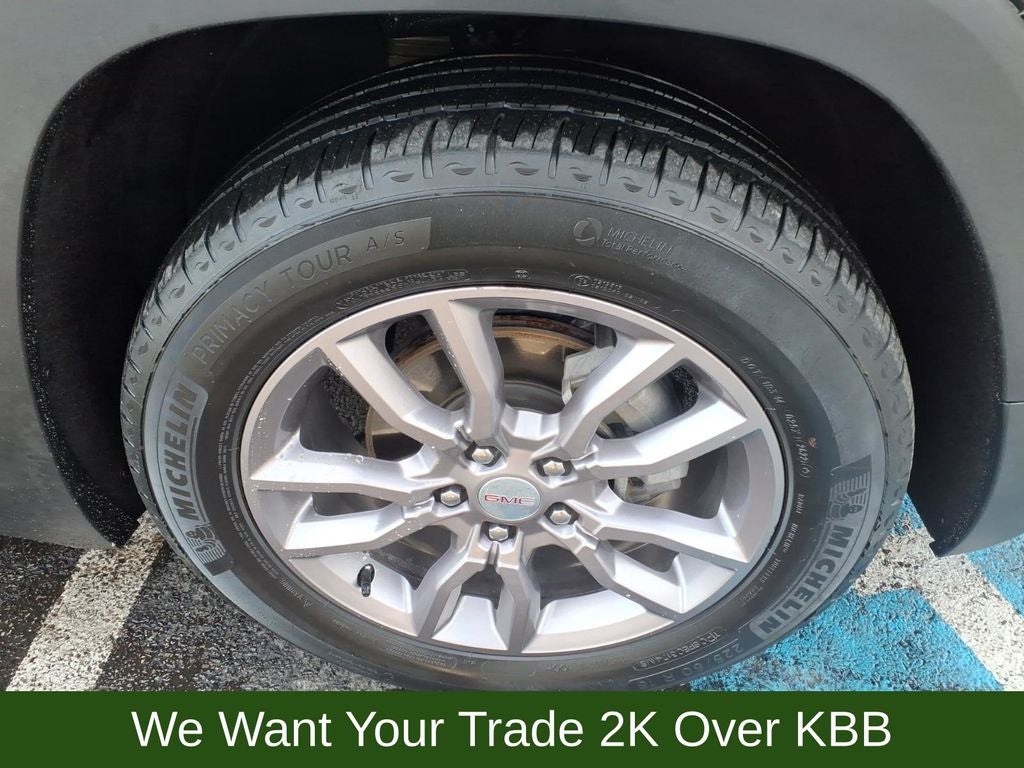 2 USB Data Ports, 2 USB Data Ports w/SD Card Reader, 3 Years of OnStar & Connected Services Plan, 3.47 Axle Ratio, 4-Wheel Disc Brakes, 6 Speakers, 6-Speaker Audio System Feature, 6-Way Power Front Passenger Seat, 8-Way Power Driver Seat Adjuster, ABS brakes, Adaptive Cruise Control, Air Conditioning, Alloy wheels, AM/FM radio: SiriusXM, Auto High-beam Headlights, Auto-dimming Rear-View mirror, Automatic temperature control, Bluetooth® For Phone, Brake assist, Bumpers: body-color, Compass, Delay-off headlights, Driver & Front Passenger Heated Seats, Driver door bin, Driver vanity mirror, Dual front impact airbags, Dual front side impact airbags, Electronic Stability Control, Emergency communication system: OnStar Guidance, Four wheel independent suspension, Front anti-roll bar, Front Bucket Seats, Front Center Armrest, Front dual zone A/C, Front fog lights, Front Passenger 2-Way Power Lumbar, Front reading lights, Fully automatic headlights, Garage door transmitter, GMC Pro Safety Plus, Heated door mirrors, Heated front seats, Heated steering wheel, Illuminated entry, Lane Change Alert w/Side Blind Zone Alert, Lane Departure Warning System, License Plate Front Mounting Package, Low tire pressure warning, Memory seat, Not Equipped w/Lane Change & Rear Cross Traffic Alerts, Occupant sensing airbag, Outside temperature display, Overhead airbag, Overhead console, Panic alarm, Passenger door bin, Passenger vanity mirror, Perforated Leather-Appointed Seat Trim, Power door mirrors, Power Driver Lumbar Control, Power driver seat, Power Liftgate, Power passenger seat, Power steering, Power windows, Preferred Equipment Group 4SA, Radio data system, Radio: GMC Infotainment Audio System w/8 Display, Rear anti-roll bar, Rear Cross-Traffic Alert, Rear Park Assist, Rear seat center armrest, Rear window defroster, Rear window wiper, Remote keyless entry, Roof rack: rails only, Safety Alert Seat, Security system, SiriusXM Radio, Speed control, Speed-sensing steering, Split folding rear seat, Spoiler, Steering wheel mounted audio controls, Tachometer, Telescoping steering wheel, Tilt steering wheel, Traction control, Trip computer, Turn signal indicator mirrors, Variably intermittent wipers, Wheels: 18 x 7 Silver Painted Aluminum, Wireless Apple CarPlay/Wireless Android Auto.