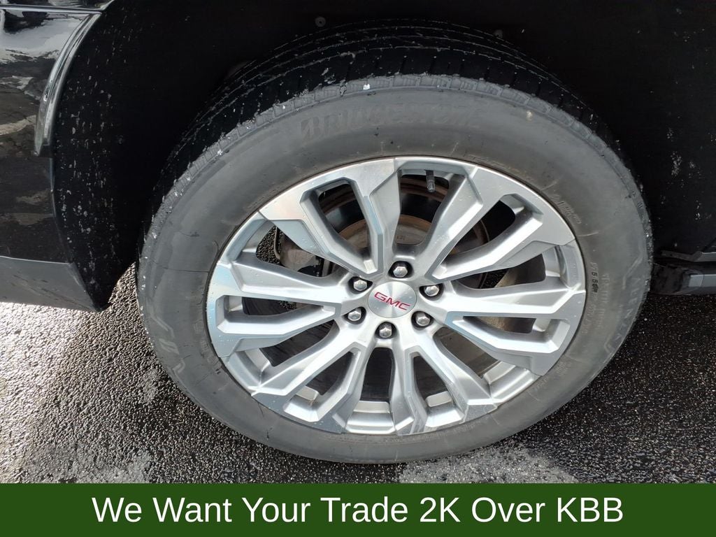 14 Speakers, 15 Diagonal Multi-Color Head-Up Display, 2 Presets For Outside Rearview Mirrors, 3 Years of GMC Connected Services, 3.23 Rear Axle Ratio, 3rd Row 60/40 Power-Folding Split-Bench Seat, 3rd row seats: split-bench, 4-Wheel Disc Brakes, ABS brakes, Adaptive Cruise Control, Adaptive suspension, Advanced Security Package, Advanced Technology Package, Air Conditioning, Alloy wheels, AM/FM radio: SiriusXM with 360L, AM/FM Stereo, Apple CarPlay/Android Auto, Auto High-beam Headlights, Auto-dimming door mirrors, Auto-dimming Rear-View mirror, Auto-leveling suspension, Automatic Emergency Braking, Automatic Stop/Start, Automatic temperature control, Bodyside moldings, Bose 14-Speaker Surround w/CenterPoint, Brake assist, Bright Front & Rear Door Sill Plates, Bumpers: body-color, Chrome Door Handles w/Body-Color Strip, Compass, Delay-off headlights, Denali Premium Package, Driver door bin, Driver vanity mirror, Dual Exhaust System, Dual front impact airbags, Dual front side impact airbags, Dual-Pane Panoramic Power Sunroof, Electronic Stability Control, Emergency communication system: OnStar and GMC Connected Services capable, Enhanced Automatic Emergency Braking, Extra Capacity Cooling System, Floor Console, Floor Console w/Storage Area, Following Distance Indicator, Forward Collision Alert, Four wheel independent suspension, Front & Rear Park Assist, Front anti-roll bar, Front Bucket Seats, Front Center Armrest, Front dual zone A/C, Front fog lights, Front Pedestrian Braking, Front reading lights, Fully automatic headlights, Galvano Bodyside Moldings, Garage door transmitter, Glass Breakage Sensor, Hands-Free Power Programmable Rear Liftgate, HD Surround Vision, Heads-Up Display, Heated & Ventilated Driver & Front Passenger Seats, Heated 2nd Row Outboard Position Seats, Heated door mirrors, Heated Driver & Front Passenger Seats, Heated front seats, Heated rear seats, Heated Steering Wheel, Heated steering wheel, Hill Descent Control, Hitch Guidance w/Hitch View, Illuminated entry, Inside Rear-View Auto-Dimming Mirror, Inside Rearview Auto-Dimming Rear Camera Mirror, Integrated Trailer Brake Controller, IntelliBeam Automatic High Beam On/Off, Lane Change Alert w/Side Blind Zone Alert, Lane Keep Assist w/Lane Departure Warning, Leather steering wheel, License Plate Front Mounting Package, Low tire pressure warning, Magnetic Ride Control Suspension, Max Trailering Package, Memory seat, Navigation System, Not Equipped w/4-Way Driver & Fr Pass Pwr Lumbar, Not Equipped w/Fr & Rr Pk Assist/Rev Auto Braking, Not Equipped w/Steering Column Lock, Occupant sensing airbag, Outside Heated Power-Adjustable Mirrors, Outside temperature display, Overhead airbag, Overhead console, Panic alarm, Passenger door bin, Passenger vanity mirror, Perforated Leather Seating Surfaces, Power door mirrors, Power driver seat, Power Liftgate, Power passenger seat, Power Release 2nd Row Bucket Seats, Power steering, Power Tilt & Telescopic Steering Column, Power windows, Power-Retractable Assist Steps, Preferred Equipment Group 5SA, Rain sensing wipers, Rear air conditioning, Rear anti-roll bar, Rear Camera Mirror Washer, Rear Cross Traffic Alert, Rear Pedestrian Alert, Rear reading lights, Rear window defroster, Rear window wiper, Remote keyless entry, Reverse Automatic Braking, Roof rack: rails only, Safety Alert Seat, Security system, SiriusXM w/360L, Smart Trailer Integration Indicator, Speed control, Speed-sensing steering, Split folding rear seat, Spoiler, Start/Stop System Disable Button, Steering wheel memory, Steering wheel mounted audio controls, Tachometer, Telescoping steering wheel, Theft-Deterrent Alarm System, Tilt steering wheel, Traction control, Trailer Side Blind Zone Alert, Trip computer, Turn signal indicator mirrors, Universal Home Remote, Variably intermittent wipers, Vehicle Inclination Se