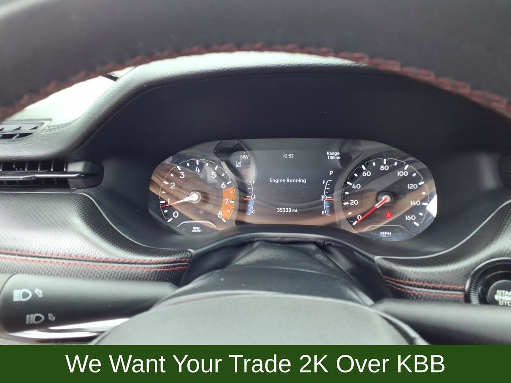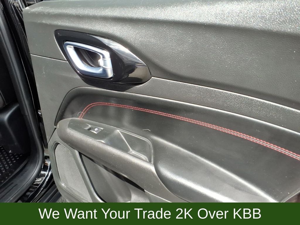10.1 Touchscreen Display, 4-Wheel Disc Brakes, 4.334 Axle Ratio, 6 Speakers, ABS brakes, Air Conditioning, Alloy wheels, AM/FM radio: SiriusXM, Anti-whiplash front head restraints, Auto High-beam Headlights, Auto-dimming Rear-View mirror, Automatic temperature control, Brake assist, Bumpers: body-color, Compass, Delay-off headlights, Disassociated Touchscreen Display, Driver door bin, Driver vanity mirror, Dual front impact airbags, Dual front side impact airbags, Electronic Stability Control, Emergency communication system: SiriusXM Guardian, Four wheel independent suspension, Front anti-roll bar, Front Bucket Seats, Front Center Armrest w/Storage, Front dual zone A/C, Front fog lights, Front License Plate Bracket, Front reading lights, Fully automatic headlights, Global Telematics Box Module (TBM), Heated door mirrors, Illuminated entry, Knee airbag, Leather Shift Knob, Low tire pressure warning, Occupant sensing airbag, Outside temperature display, Overhead airbag, Overhead console, Panic alarm, ParkView Rear Back-Up Camera, Passenger door bin, Passenger vanity mirror, Power door mirrors, Power steering, Power windows, Premium Cloth/Leather Trim Bucket Seats, Quick Order Package 2GE, Radio: Uconnect 5 w/10.1 Display, Rain sensing wipers, Rear anti-roll bar, Rear seat center armrest, Rear window defroster, Rear window wiper, Remote keyless entry, Roof rack: rails only, Security system, Speed control, Split folding rear seat, Spoiler, Steering wheel mounted audio controls, Tachometer, Telescoping steering wheel, Tilt steering wheel, Traction control, Trip computer, Turn signal indicator mirrors, Variably intermittent wipers, Wheels: 17 x 6.5 Painted Diamond Cut Aluminum.