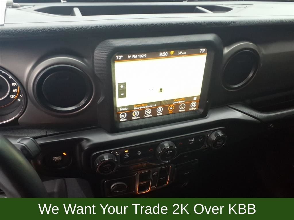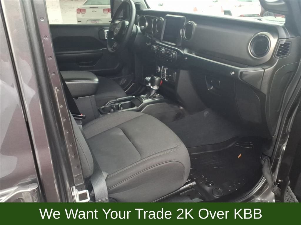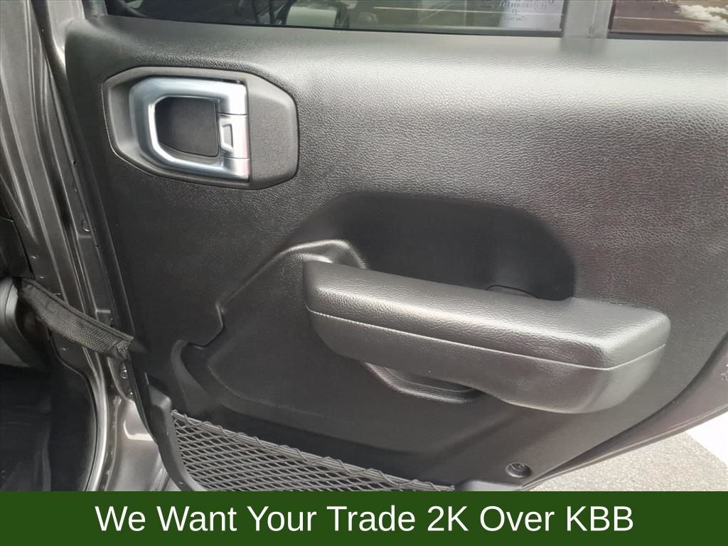 110 MPH Vehicle Max Speed Calibration, 2-Door Passive Entry, Front Door Locks, 3.73 Rear Axle Ratio, 4-Wheel Disc Brakes, 5-Year SiriusXM Travel Link Service, 8 Speakers, 8.4 Radio & Premium Audio Group, 8.4 Touchscreen Display, ABS brakes, Air Conditioning, Alpine Premium Audio System, AM/FM radio, Apple CarPlay, Apple CarPlay/Android Auto, Black 3-Piece Hard Top, Brake assist, Cloth Low-Back Bucket Seats, Cold Weather Group, Compass, Convenience Group, Corning Gorilla Glass, Delay-off headlights, Driver door bin, Driver vanity mirror, Dual front impact airbags, Dual front side impact airbags, Electronic Stability Control, Emergency communication system: SiriusXM Guardian, Front anti-roll bar, Front Bucket Seats, Front Center Armrest w/Storage, Front fog lights, Front reading lights, Google Android Auto, GPS Antenna Input, Integrated Center Stack Radio, Integrated roll-over protection, Integrated Voice Command w/Bluetooth®, LED Headlamp & Fog Lamp Group, Low tire pressure warning, Normal Duty Suspension, Occupant sensing airbag, Outside temperature display, ParkView Rear Back-Up Camera, Passenger door bin, Passenger vanity mirror, Power steering, Quick Order Package 24W Willys, Radio data system, Radio: Uconnect 4 w/7 Display, Radio: Uconnect 4C Nav w/8.4 Display, Rear anti-roll bar, Rear reading lights, SiriusXM Satellite Radio, Speed control, Split folding rear seat, Steering wheel mounted audio controls, Tachometer, Technology Group, Telescoping steering wheel, Tilt steering wheel, Traction control, Trailer Tow Package, Trip computer, USB Host Flip, Variably intermittent wipers, Wheels: 17 x 7.5 Black Steel Styled.