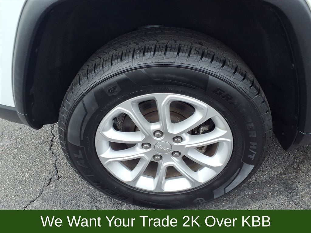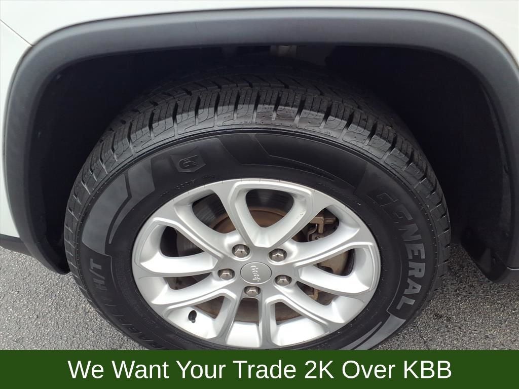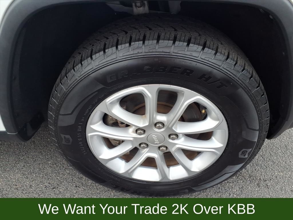 3.45 Rear Axle Ratio, 4-Wheel Disc Brakes, 6 Speakers, ABS brakes, Air Conditioning, Alloy wheels, AM/FM radio: SiriusXM, Anti-whiplash front head restraints, Apple CarPlay/Android Auto, Auto-dimming Rear-View mirror, Automatic temperature control, Brake assist, Bumpers: body-color, Cloth Bucket Seats, Compass, Delay-off headlights, Driver door bin, Driver vanity mirror, Dual front impact airbags, Dual front side impact airbags, Electronic Stability Control, Emergency communication system: SiriusXM Guardian, Four wheel independent suspension, Front anti-roll bar, Front Bucket Seats, Front Center Armrest w/Storage, Front dual zone A/C, Front fog lights, Front reading lights, Fully automatic headlights, Heated door mirrors, Illuminated entry, Knee airbag, Leather Shift Knob, Low tire pressure warning, Navigation System, Normal Duty Suspension, Occupant sensing airbag, Outside temperature display, Overhead airbag, Overhead console, Panic alarm, ParkView Rear Back-Up Camera, Passenger door bin, Passenger vanity mirror, Power door mirrors, Power driver seat, Power steering, Power windows, Quick Order Package 2GE Laredo E (DISC), Radio data system, Radio: Uconnect 4C Nav w/8.4 Display, Rear anti-roll bar, Rear reading lights, Rear seat center armrest, Rear window defroster, Rear window wiper, Remote keyless entry, Speed control, Speed-sensing steering, Speed-Sensitive Wipers, Split folding rear seat, Spoiler, Steering Wheel Mounted Audio Controls, Steering wheel mounted audio controls, Tachometer, Telescoping steering wheel, Tilt steering wheel, Traction control, Trip computer, Variably intermittent wipers, Wheels: 18 x 8.0 Fine Silver Aluminum.