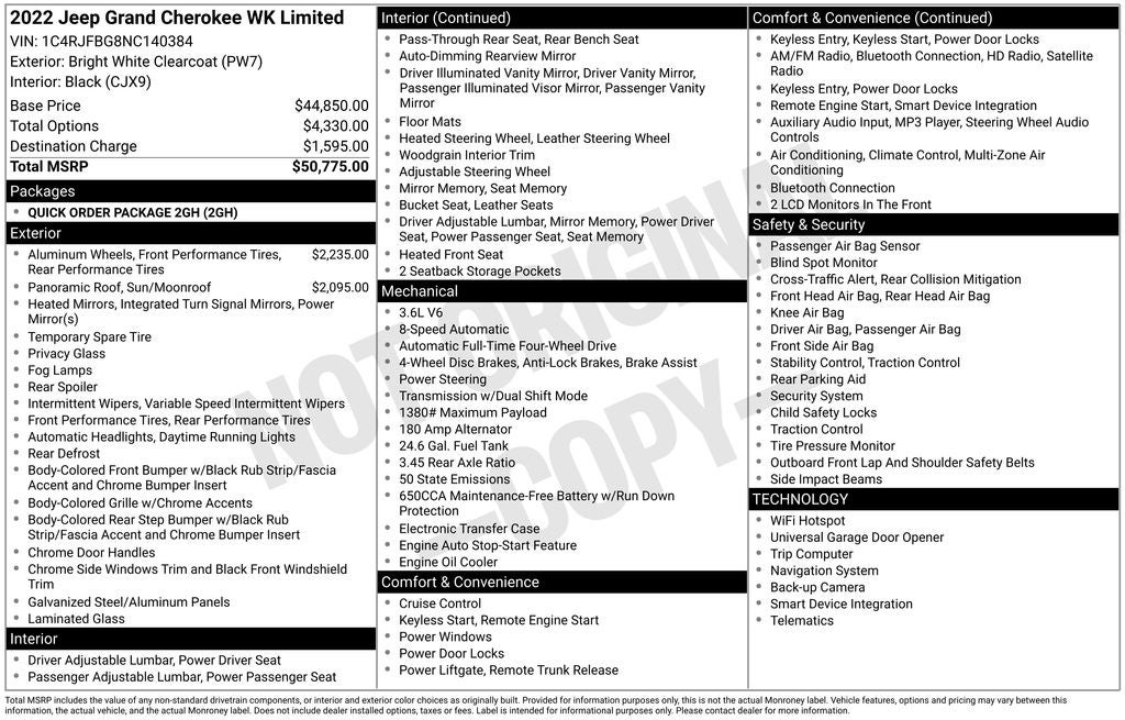 Imagine the pride and satisfaction of owning this exceptional SUV. With its impressive performance, luxurious amenities, and advanced safety technologies, the 2022 Jeep Grand Cherokee WK Limited is a true standout in its class. We invite you to experience the difference for yourself by scheduling a test drive at our showroom. Let us help you discover the joy of driving this remarkable vehicle.