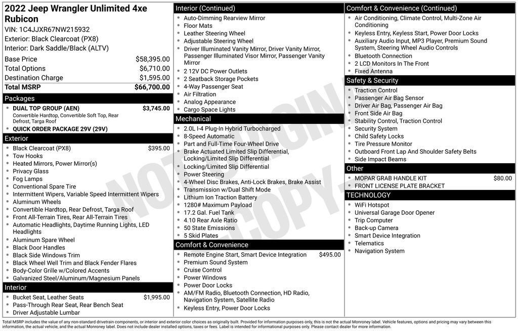 Highlights of this meticulously equipped Wrangler Unlimited Rubicon 4xe include: