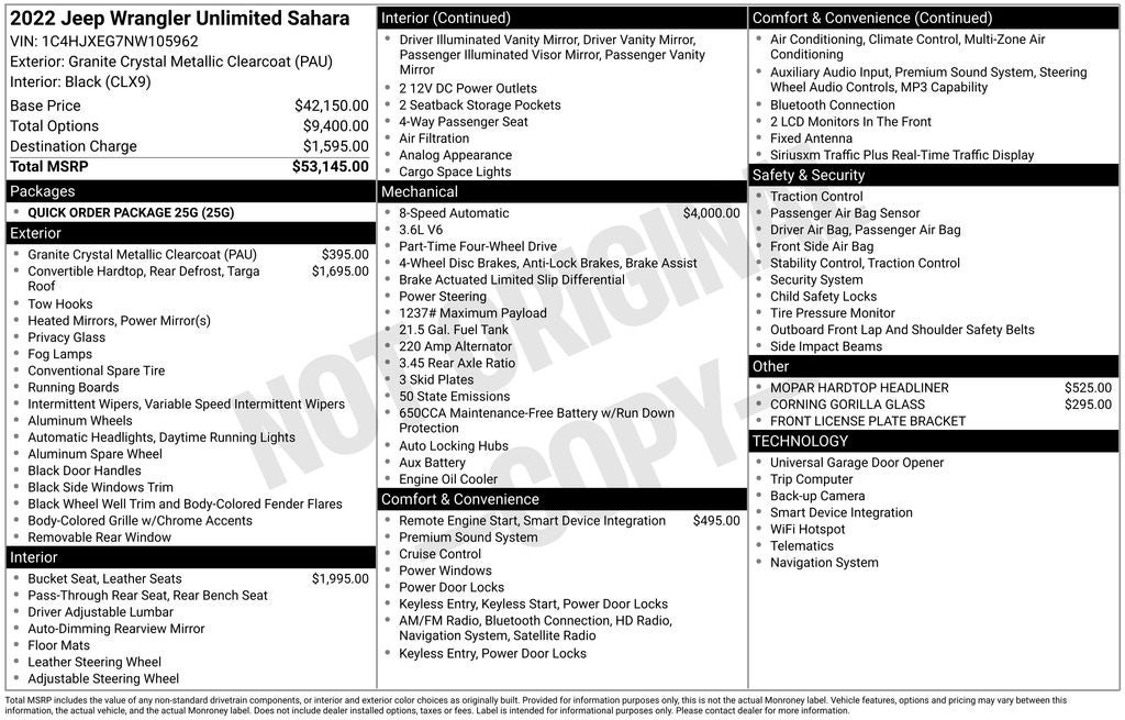 - Vehicle Name: Jeep Wrangler