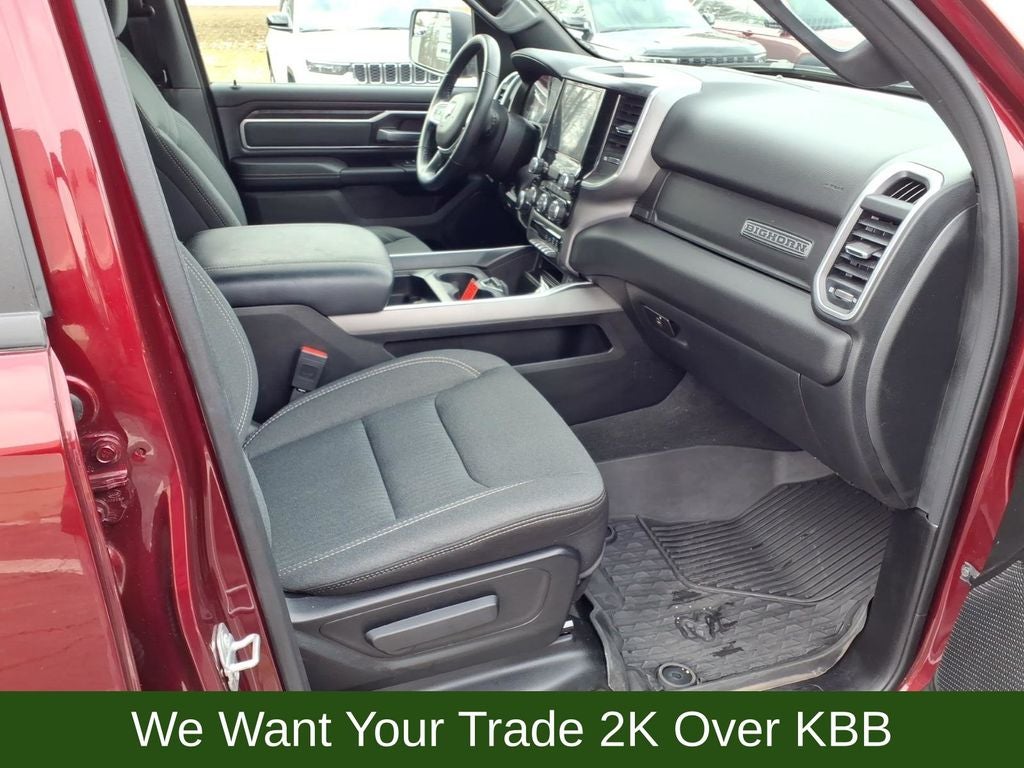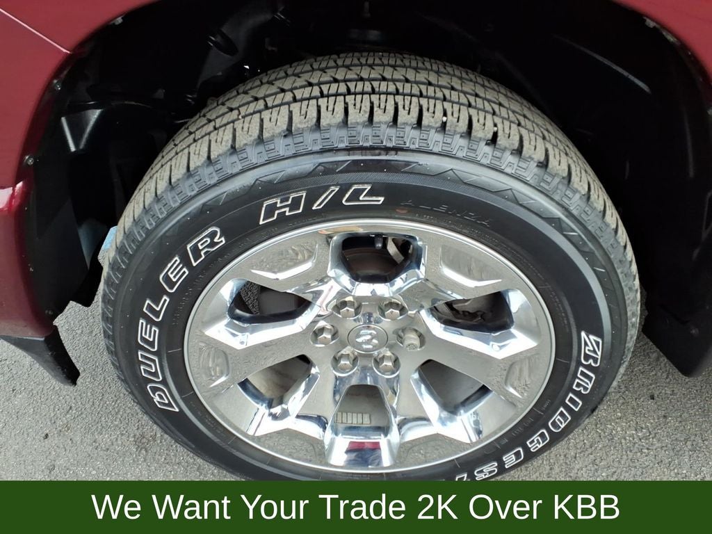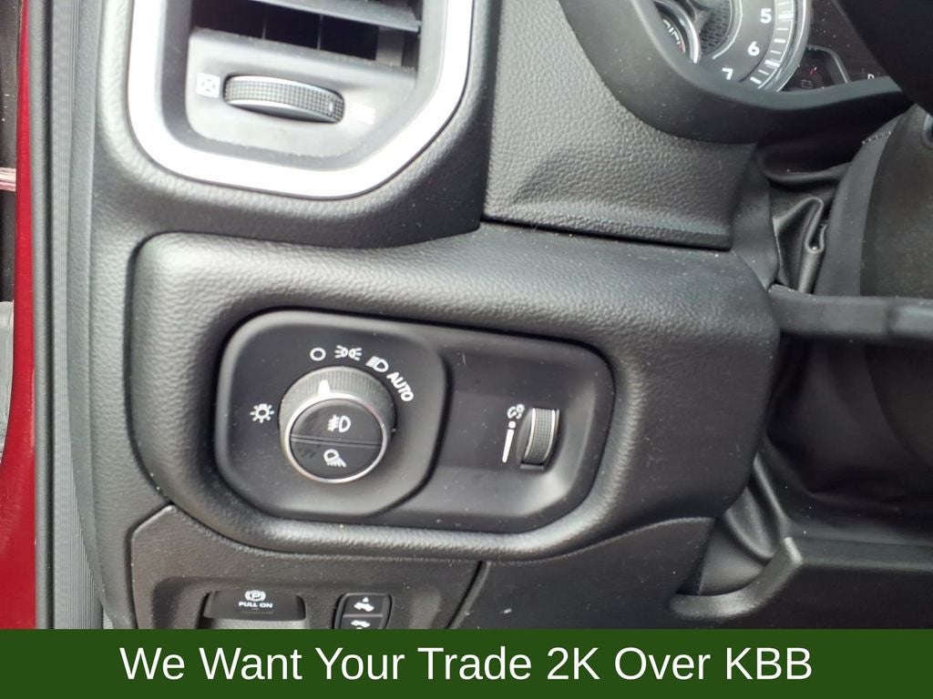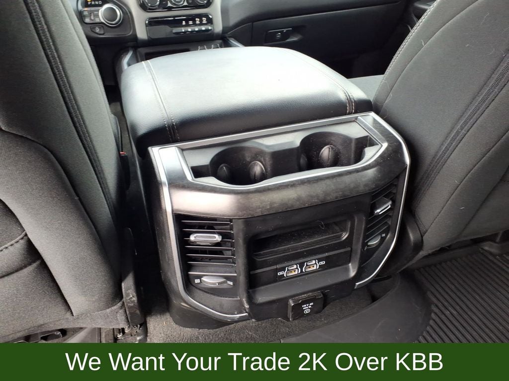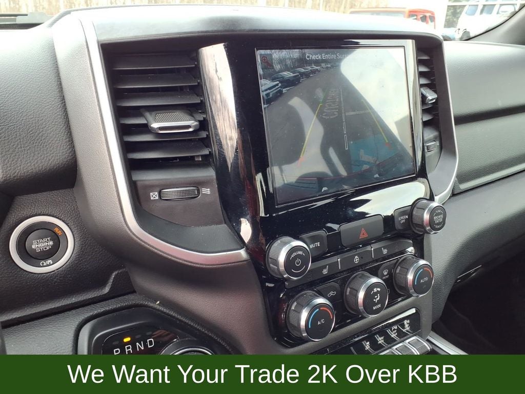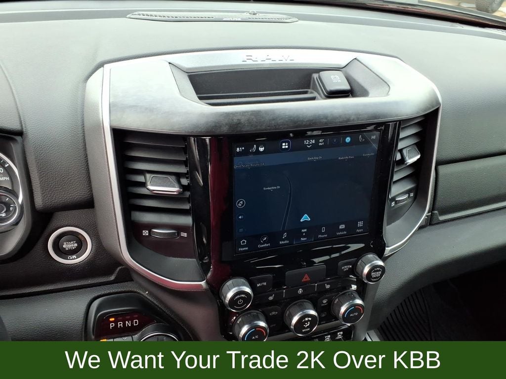 115V Auxiliary Power Outlet, 115V Auxiliary Rear Power Outlet, 2nd Row In Floor Storage Bins, 3 Rear Seat Head Restraints, 3.21 Rear Axle Ratio, 4 Way Front Headrests, 4-Wheel Disc Brakes, 400W Inverter, 48V Belt Starter Generator, 4G LTE Wi-Fi Hot Spot, 6 Speakers, 8.4 Touchscreen Display, 9 Amplified Speakers w/Subwoofer, ABS brakes, Air Conditioning, Air Conditioning ATC w/Dual Zone Control, All Plant-Installed Decals, All R1 High Radios, All Radio Equipped Vehicles, Alloy wheels, AM/FM radio, Apple CarPlay, Auto-Dimming Exterior Driver Mirror, Auto-Dimming Rear-View Mirror, Big Horn Badge, Big Horn Level 2 Equipment Group, Black Exterior Mirrors, Black Interior Accents, Black Premium Power Mirrors, Bluetooth® Handsfree Phone & Audio, Body Color Exterior Mirrors, Body Color Front Bumper, Body Color Premium Power Mirrors, Body Color Rear Bumper w/Step Pads, Brake assist, Bridgestone Brand Tires, Bucket Seats, Bumpers: chrome, Class IV Receiver Hitch, Cloth Bench Seat, Cluster 7.0 TFT Color Display, Compass, Connected Travel & Traffic Services, Connectivity - US/Canada, Convex Wide-Angle Mirror Insert, Delay-off headlights, Delete LED Lamp - Floor Console Bin, Deluxe Cloth Bucket Seats, Disassociated Touchscreen Display, Driver door bin, Dual front impact airbags, Dual front side impact airbags, Electronic Stability Control, Emergency communication system: SiriusXM Guardian, Exterior Mirrors Courtesy Lamps, Exterior Mirrors w/Heating Element, Exterior Mirrors w/Supplemental Signals, For Details, Visit DriveUconnect.com, Front anti-roll bar, Front Center Armrest w/Storage, Front fog lights, Front reading lights, Front Seat Back Map Pockets, Front wheel independent suspension, Full Length Floor Console, Fully automatic headlights, Global Telematics Box Module (TBM), Glove Box Lamp, Google Android Auto, GPS Antenna Input, GPS Navigation, HD Radio, Heated door mirrors, Heated Front Seats, Heated Steering Wheel, Heavy-Duty Engine Cooling, Illuminated entry, Integrated Center Stack Radio, Integrated Voice Command w/Bluetooth®, Leather steering wheel, Low tire pressure warning, Manual Adjust 4-Way Front Passenger Seat, Media Hub w/2 Charge Only USBs, MOPAR Front & Rear Rubber Floor Mats, Occupant sensing airbag, Outside temperature display, Overhead airbag, Overhead console, Panic alarm, ParkSense Front/Rear Park Assist w/Stop, ParkView Rear Back-Up Camera, Passenger door bin, Passenger vanity mirror, Power 2-Way Driver Lumbar Adjust, Power 8-Way Driver Seat, Power Adjustable Pedals, Power door mirrors, Power steering, Power windows, Power-Folding Mirrors, Quick Order Package 27Z Big Horn, Radio data system, Radio: Uconnect 3 w/5 Display, Radio: Uconnect 5 Nav w/8.4 Display, Radio: Uconnect 5 W w/8.4 Display, Rear 60/40 Folding Seat, Rear anti-roll bar, Rear Center Armrest, Rear Dome w/On/Off Switch Lamp, Rear Power Sliding Window, Rear seat center armrest, Rear step bumper, Rear Underseat Compartment Storage (DISC), Rear Window Defroster, Remote keyless entry, Remote Start System, Security Alarm, SiriusXM Radio Service, SiriusXM Satellite Radio, SiriusXM w/360L, Speed control, Split folding rear seat, Sport Appearance Package, Sport Decal, Steering wheel mounted audio controls, Sun Visors w/Illuminated Vanity Mirrors, Tachometer, Telescoping steering wheel, Tilt steering wheel, Traction control, Trip computer, Universal Garage Door Opener, USB Host Flip, Variably intermittent wipers, Voltmeter, Wheels: 18 x 8 Cast-Aluminum Painted, Wheels: 20 x 9 Aluminum Chrome Clad (WRK).
