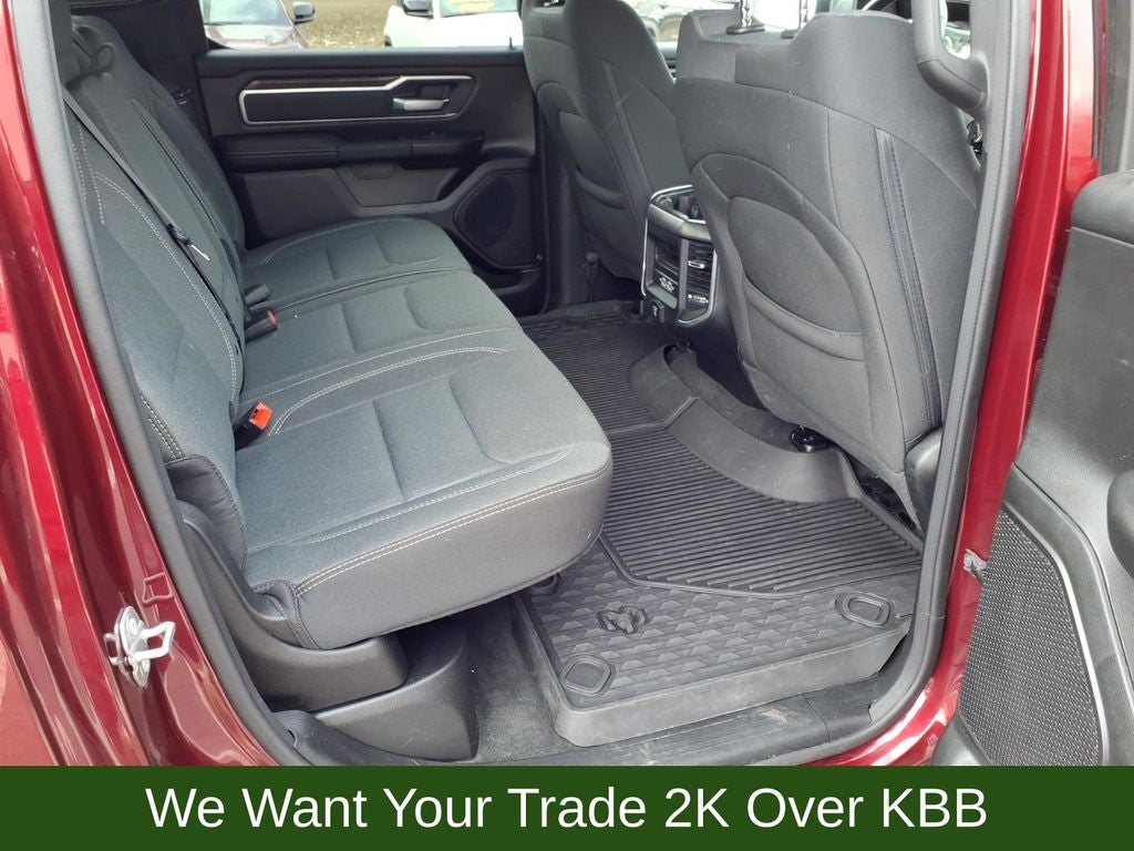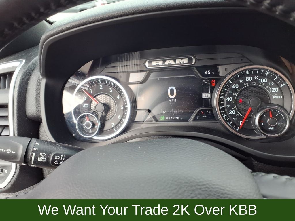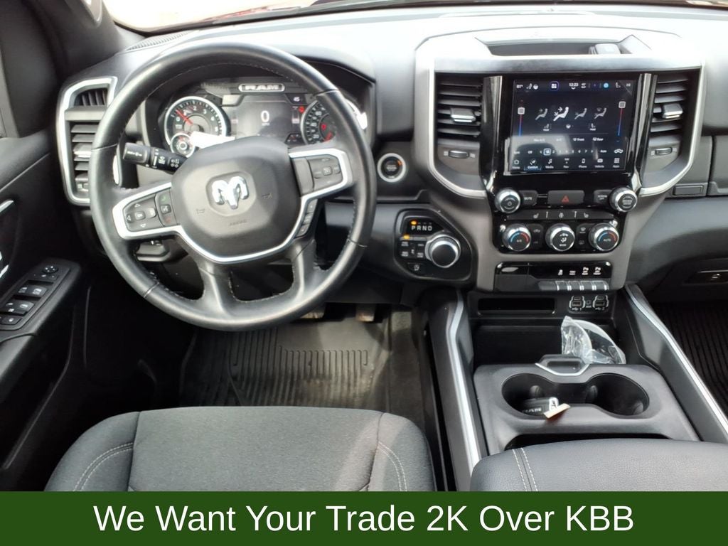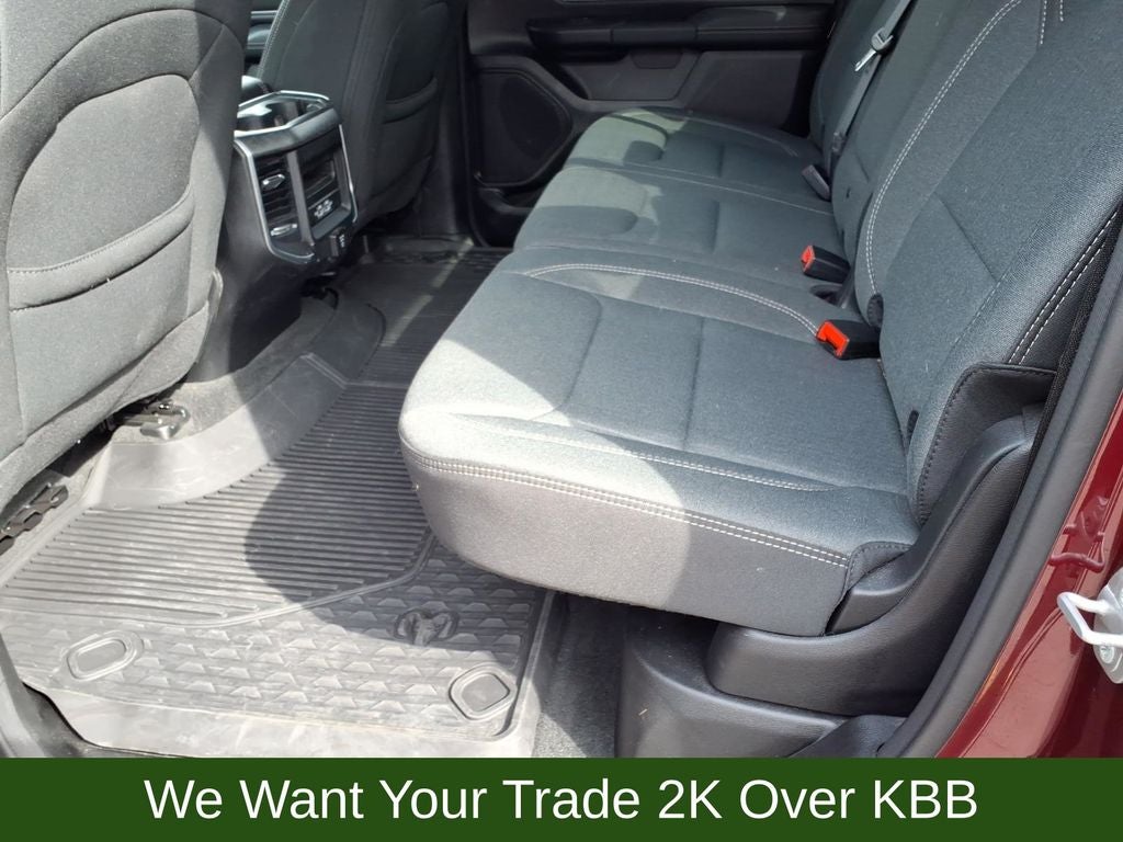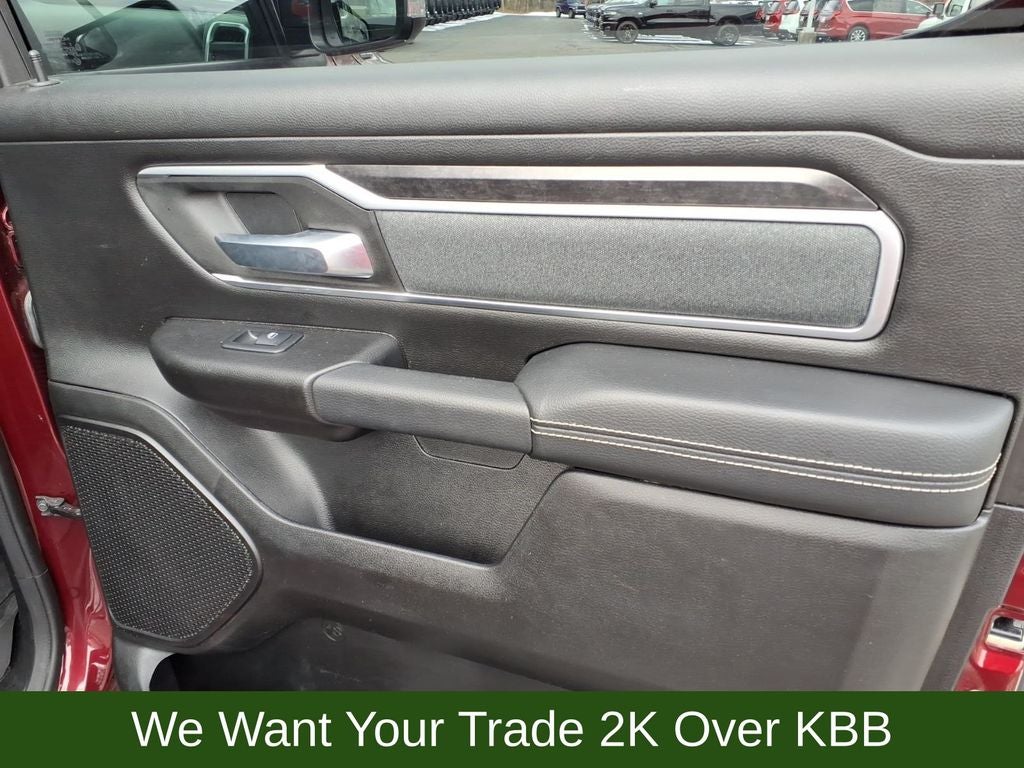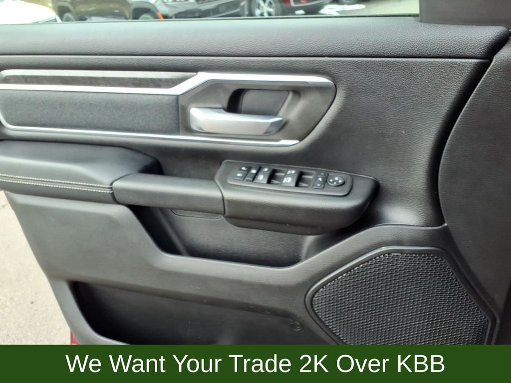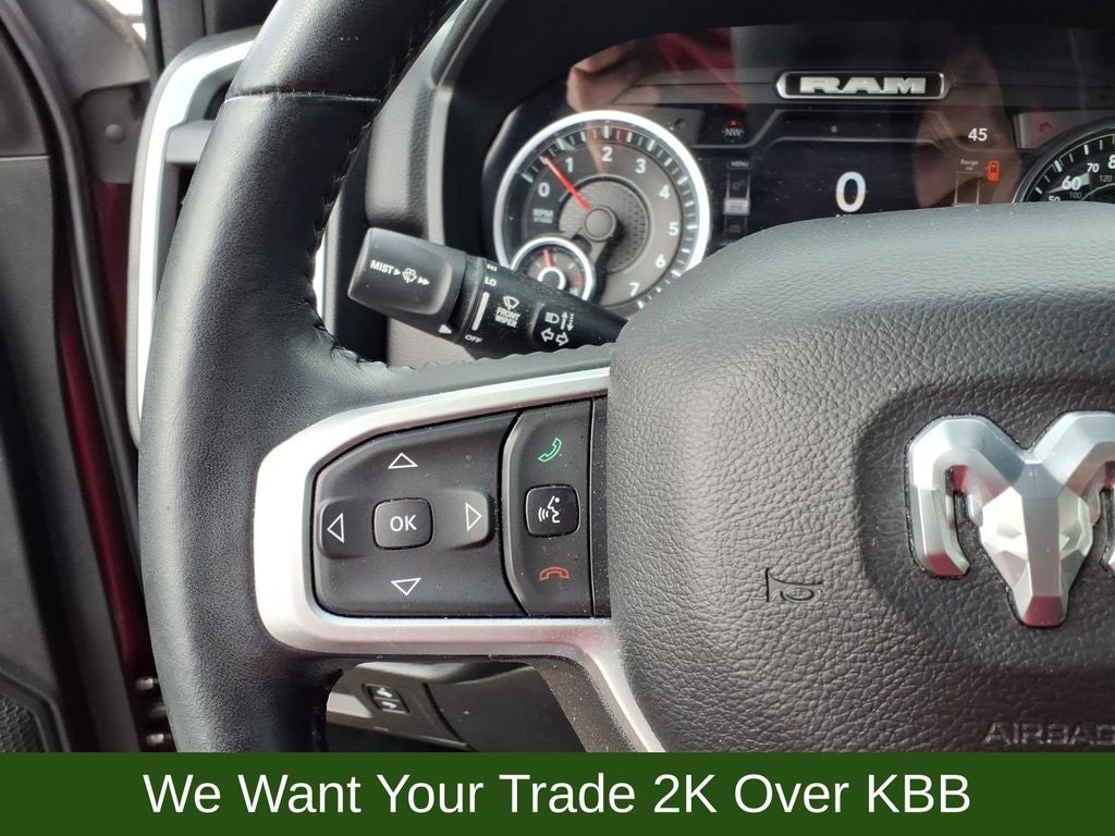 115V Auxiliary Power Outlet, 115V Auxiliary Rear Power Outlet, 2nd Row In Floor Storage Bins, 3 Rear Seat Head Restraints, 3.21 Rear Axle Ratio, 4 Way Front Headrests, 4-Wheel Disc Brakes, 400W Inverter, 48V Belt Starter Generator, 4G LTE Wi-Fi Hot Spot, 6 Speakers, 8.4 Touchscreen Display, 9 Amplified Speakers w/Subwoofer, ABS brakes, Air Conditioning, Air Conditioning ATC w/Dual Zone Control, All Plant-Installed Decals, All R1 High Radios, All Radio Equipped Vehicles, Alloy wheels, AM/FM radio, Apple CarPlay, Auto-Dimming Exterior Driver Mirror, Auto-Dimming Rear-View Mirror, Big Horn Badge, Big Horn Level 2 Equipment Group, Black Exterior Mirrors, Black Interior Accents, Black Premium Power Mirrors, Bluetooth® Handsfree Phone & Audio, Body Color Exterior Mirrors, Body Color Front Bumper, Body Color Premium Power Mirrors, Body Color Rear Bumper w/Step Pads, Brake assist, Bridgestone Brand Tires, Bucket Seats, Bumpers: chrome, Class IV Receiver Hitch, Cloth Bench Seat, Cluster 7.0 TFT Color Display, Compass, Connected Travel & Traffic Services, Connectivity - US/Canada, Convex Wide-Angle Mirror Insert, Delay-off headlights, Delete LED Lamp - Floor Console Bin, Deluxe Cloth Bucket Seats, Disassociated Touchscreen Display, Driver door bin, Dual front impact airbags, Dual front side impact airbags, Electronic Stability Control, Emergency communication system: SiriusXM Guardian, Exterior Mirrors Courtesy Lamps, Exterior Mirrors w/Heating Element, Exterior Mirrors w/Supplemental Signals, For Details, Visit DriveUconnect.com, Front anti-roll bar, Front Center Armrest w/Storage, Front fog lights, Front reading lights, Front Seat Back Map Pockets, Front wheel independent suspension, Full Length Floor Console, Fully automatic headlights, Global Telematics Box Module (TBM), Glove Box Lamp, Google Android Auto, GPS Antenna Input, GPS Navigation, HD Radio, Heated door mirrors, Heated Front Seats, Heated Steering Wheel, Heavy-Duty Engine Cooling, Illuminated entry, Integrated Center Stack Radio, Integrated Voice Command w/Bluetooth®, Leather steering wheel, Low tire pressure warning, Manual Adjust 4-Way Front Passenger Seat, Media Hub w/2 Charge Only USBs, MOPAR Front & Rear Rubber Floor Mats, Occupant sensing airbag, Outside temperature display, Overhead airbag, Overhead console, Panic alarm, ParkSense Front/Rear Park Assist w/Stop, ParkView Rear Back-Up Camera, Passenger door bin, Passenger vanity mirror, Power 2-Way Driver Lumbar Adjust, Power 8-Way Driver Seat, Power Adjustable Pedals, Power door mirrors, Power steering, Power windows, Power-Folding Mirrors, Quick Order Package 27Z Big Horn, Radio data system, Radio: Uconnect 3 w/5 Display, Radio: Uconnect 5 Nav w/8.4 Display, Radio: Uconnect 5 W w/8.4 Display, Rear 60/40 Folding Seat, Rear anti-roll bar, Rear Center Armrest, Rear Dome w/On/Off Switch Lamp, Rear Power Sliding Window, Rear seat center armrest, Rear step bumper, Rear Underseat Compartment Storage (DISC), Rear Window Defroster, Remote keyless entry, Remote Start System, Security Alarm, SiriusXM Radio Service, SiriusXM Satellite Radio, SiriusXM w/360L, Speed control, Split folding rear seat, Sport Appearance Package, Sport Decal, Steering wheel mounted audio controls, Sun Visors w/Illuminated Vanity Mirrors, Tachometer, Telescoping steering wheel, Tilt steering wheel, Traction control, Trip computer, Universal Garage Door Opener, USB Host Flip, Variably intermittent wipers, Voltmeter, Wheels: 18 x 8 Cast-Aluminum Painted, Wheels: 20 x 9 Aluminum Chrome Clad (WRK).