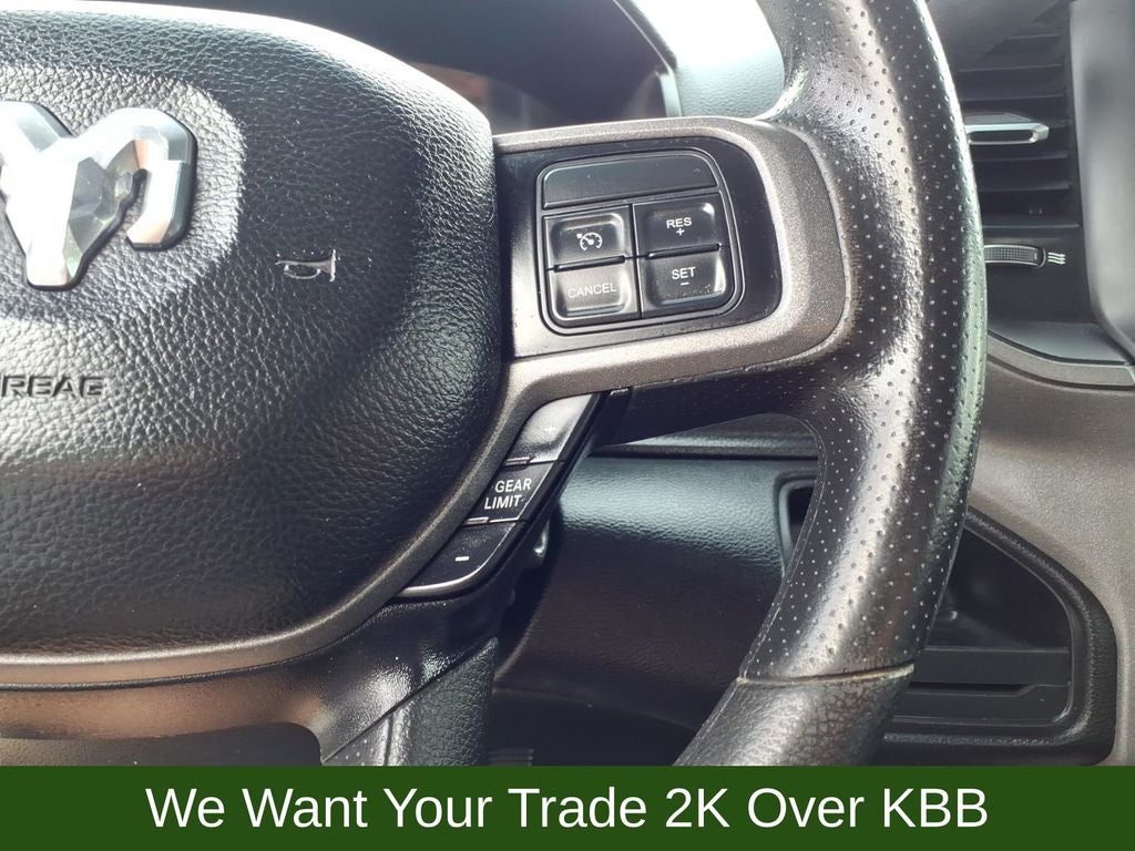 115V Auxiliary Front Power Outlet, 17 x 7.5 Steel Styled Wheels, 2 Red Vinyl Flags, 2 Way Rear Headrest Seat, 220 Amp Alternator, 3 Reflecting Triangles, 3.73 Axle Ratio, 4 Way Front Headrests, 4-Wheel Disc Brakes, 40/20/40 Split Bench Seat, 400W Inverter, 4G LTE Wi-Fi Hot Spot, 6 Speakers, 8.4 Touchscreen Display, ABS brakes, Active Noise Control System, Air Conditioning, All R1 Low Radios, All Radio Equipped Vehicles, AM/FM radio, Anti-Spin Differential Rear Axle, Apple CarPlay, Black Exterior Mirrors, Bluetooth® Handsfree Phone & Audio, Brake assist, Bright Front Bumper, Bright Rear Bumper, Center Hub, Chrome Appearance Group, Chrome Grille Surround, Clearance Lamps, Cluster 3.5 TFT Color Display, Cold Weather Group, Compass, Connectivity - US/Canada, Dash Pass Thru Wire Circuits, Delay-off headlights, DOT Certified Roadside Safety Kit, DOT Fire Extinguisher, Driver door bin, Dual front impact airbags, Dual front side impact airbags, Electronic Stability Control, Electronically Controlled Throttle, Emergency communication system: SiriusXM Guardian, Engine Block Heater, Exterior 115V AC Outlet, Exterior Mirrors Courtesy Lamps, Exterior Mirrors w/Heating Element, Exterior Mirrors w/Supplemental Signals, For Details, Visit DriveUconnect.com, Front anti-roll bar, Front Center Armrest w/Storage, Front License Plate Bracket, Front reading lights, Fully automatic headlights, Global Telematics Box Module (TBM), Google Android Auto, GPS Antenna Input, Heated door mirrors, Heavy Duty Vinyl 40/20/40 Split Bench Seat, I/P Mounted Auxiliary Switches, Illuminated entry, Integrated Center Stack Radio, Integrated Voice Command w/Bluetooth®, Low tire pressure warning, Manual Adjust 4-Way Driver Seat, Manufacturer's Statement of Origin, Matte Black Mesh Grille w/Chrome, Mirror Running Lights, MOPAR Front & Rear Rubber Floor Mats, MOPAR Winter Front Grille Cover, Occupant sensing airbag, Outside temperature display, Overhead airbag, Overhead console, ParkSense Rear Park Assist System, ParkView Rear Back-Up Camera, Passenger door bin, Passenger vanity mirror, Power Adjust & Heated Black Tow Mirrors, Power door mirrors, Power steering, Power windows, Protection Group, Quick Order Package 2HA Tradesman, Radio data system, Radio: Uconnect 3 w/5 Display, Radio: Uconnect 5 W w/8.4 Display, Rear anti-roll bar, Rear Backup Alarm, Rear Folding Seat, Rear step bumper, Selectable Tire Fill Alert, SiriusXM Radio Service, SiriusXM Satellite Radio, Snow Chief Group, Spare Fuses, Speed control, Storage Tray, Tachometer, Tilt steering wheel, Tip Start, Tow Hooks, Traction control, Trailer Brake Control, Trailer Light Check, Trailer Tow Mirrors, Variably intermittent wipers, Voltmeter, Wheels: 18 x 8.0 Steel Chrome Clad.