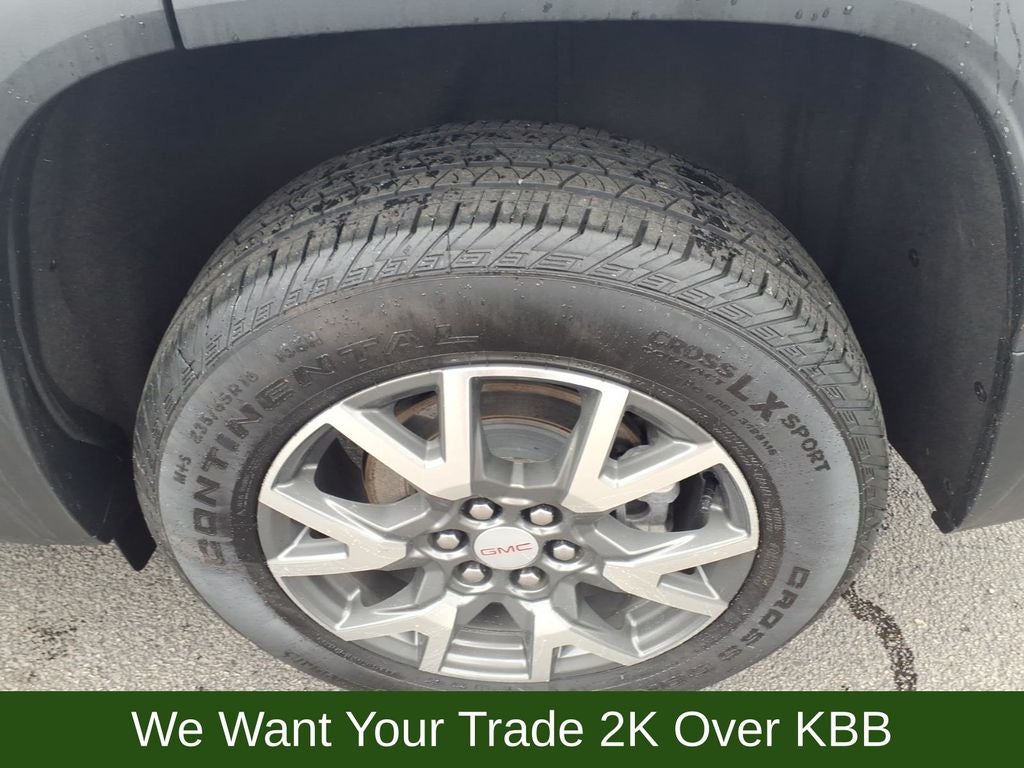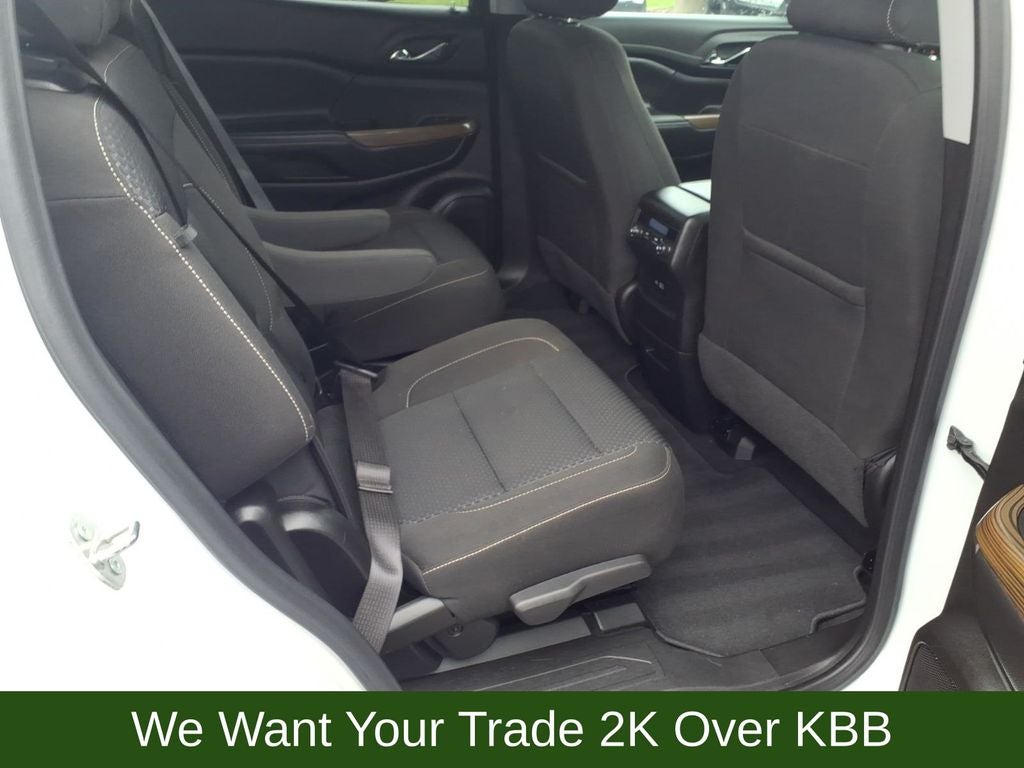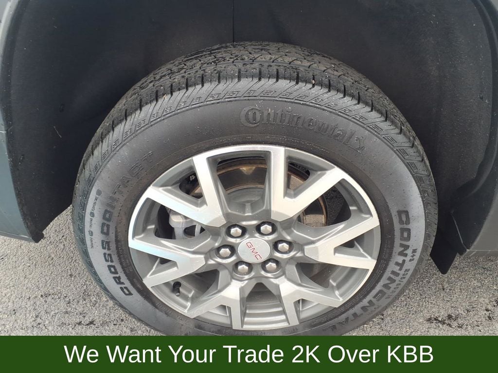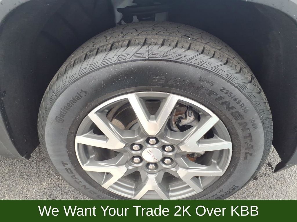 3.47 Final Drive Axle Ratio, 3rd row seats: split-bench, 4-Way Manual Driver Seat Adjuster, 4-Way Manual Passenger Seat Adjuster, 4-Wheel Disc Brakes, 6 Speakers, 6-Passenger (2-2-2 Seating Configuration), 6-Speaker Audio System Feature, ABS brakes, Air Conditioning, Alloy wheels, AM/FM radio: SiriusXM, Apple CarPlay/Android Auto, Auto High-beam Headlights, Automatic temperature control, Brake assist, Bumpers: body-color, Compass, Delay-off headlights, Driver door bin, Driver vanity mirror, Dual front impact airbags, Dual front side impact airbags, Electronic Stability Control, Emergency communication system: OnStar and GMC connected services capable, Four wheel independent suspension, Front anti-roll bar, Front Bucket Seats, Front Center Armrest, Front dual zone A/C, Front License Plate Bracket, Front reading lights, Fully automatic headlights, Heated door mirrors, Illuminated entry, Knee airbag, Low tire pressure warning, Not Equipped w/Front & Rear Park Assist (060), Occupant sensing airbag, Outside temperature display, Overhead airbag, Overhead console, Panic alarm, Passenger door bin, Passenger vanity mirror, Power door mirrors, Power steering, Power windows, Preferred Equipment Group 3SA, Premium Cloth Seat Trim, Radio data system, Radio: AM/FM w/8 Diagonal Multi-Touch Display, Rear air conditioning, Rear anti-roll bar, Rear reading lights, Rear window defroster, Rear window wiper, Remote keyless entry, Security system, SiriusXM Radio, Speed control, Speed-sensing steering, Spoiler, Steering wheel mounted audio controls, Tachometer, Telescoping steering wheel, Tilt steering wheel, Traction control, Trip computer, Turn signal indicator mirrors, Variably intermittent wipers, Voltmeter, Wheels: 18 Machined Aluminum w/Dark Accents, Wireless Apple CarPlay/Wireless Android Auto.