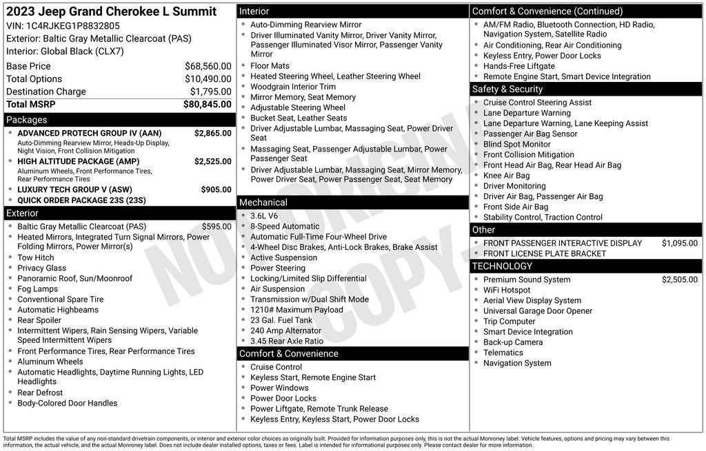 2023 Baltic Gray Metallic Clearcoat Jeep Grand Cherokee L Summit 4WD 8-Speed Automatic 3.6L V6 24V VVT