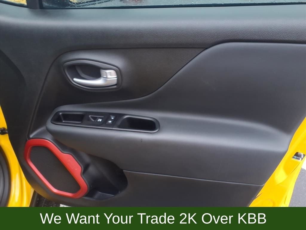 4-Wheel Disc Brakes, 4.585 Final Drive Ratio, 6 Speakers, ABS brakes, Air Conditioning, Alloy wheels, AM/FM radio: SiriusXM, Anti-whiplash front head restraints, Apple CarPlay/Android Auto, Auto-dimming Rear-View mirror, Automatic temperature control, Bi-Function LED Projector Headlamps, Brake assist, Compass, Dedicated LED Daytime Running Lamps, Delay-off headlights, Driver door bin, Driver vanity mirror, Dual front impact airbags, Dual front side impact airbags, Dual-Pane Panoramic Power Sunroof, Electronic Stability Control, Emergency communication system: SiriusXM Guardian, Four wheel independent suspension, Front anti-roll bar, Front Bucket Seats, Front Center Armrest, Front dual zone A/C, Front fog lights, Front reading lights, Front Seat Back Map Pockets, Fully automatic headlights, Heated door mirrors, Heated Front Seats, Heated Steering Wheel, Illuminated entry, Knee airbag, Leather Shift Knob, Leather steering wheel, Leather Wrapped Steering Wheel, LED Cornering Fog Lamps, LED Taillamps, Low tire pressure warning, Navigation System, Normal Duty Suspension, Occupant sensing airbag, Outside temperature display, Overhead airbag, Panic alarm, ParkView Rear Back-Up Camera, Passenger door bin, Passenger vanity mirror, Power 2-Way Driver Lumbar Adjust, Power Adjust 8-Way Driver Seat, Power door mirrors, Power steering, Power windows, Premium Audio, Premium Cloth Low-Back Bucket Seats, Premium Leather Trimmed Bucket Seats, Premium Lighting Group, Quick Order Package 22C, Radio data system, Radio: Uconnect 4C Nav w/8.4 Display, Rain sensing wipers, Rear anti-roll bar, Rear window defroster, Rear window wiper, Remote keyless entry, Roof rack: rails only, Security system, Speed control, Split folding rear seat, Spoiler, Steering wheel mounted audio controls, Sun/Sound Group, Tachometer, Telescoping steering wheel, Tilt steering wheel, Traction control, Trailhawk Elite Group, Trip computer, Turn signal indicator mirrors, Variably intermittent wipers, Voltmeter, Wheels: 17 x 7 Glossy Black Diamond Cut.