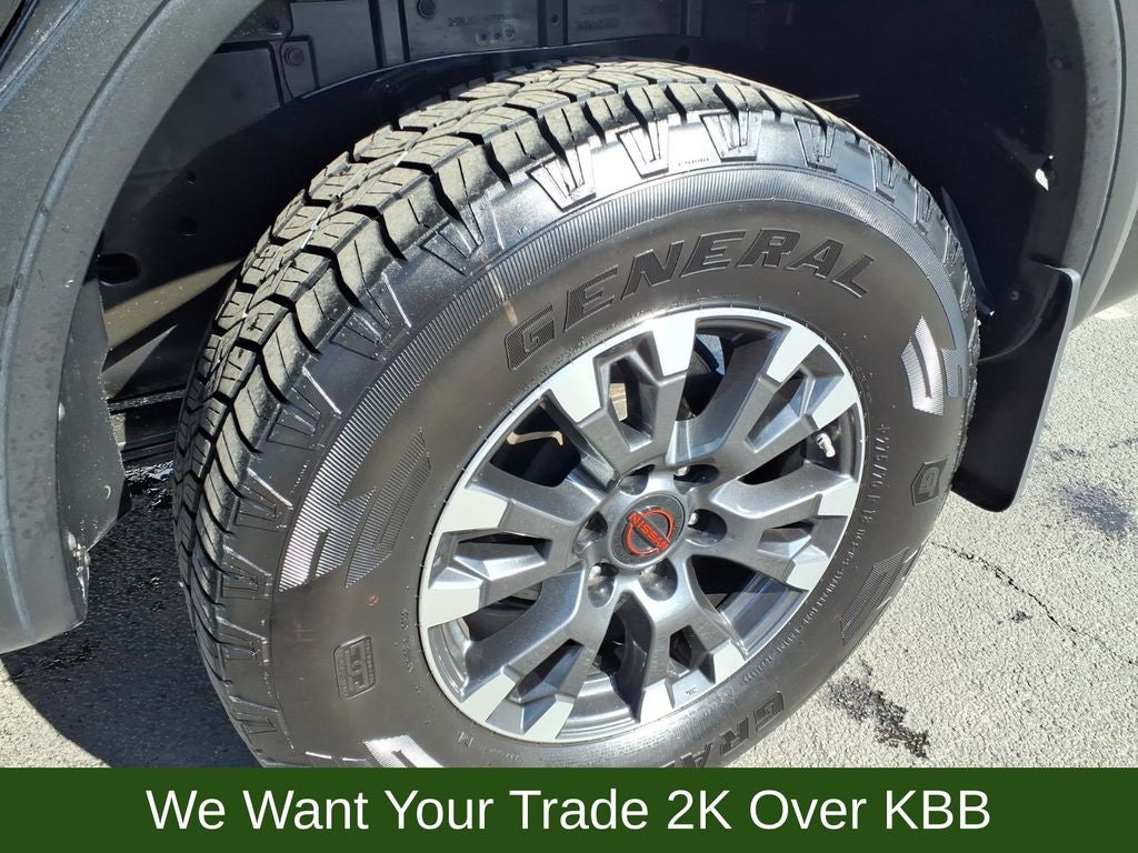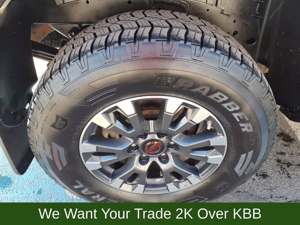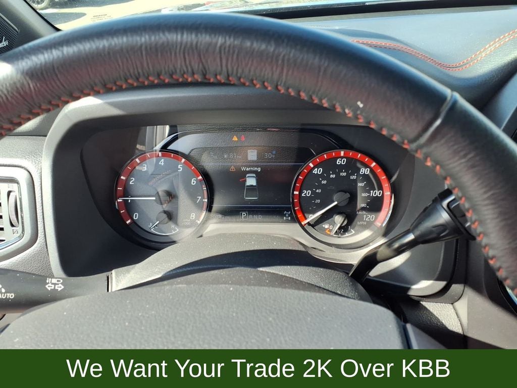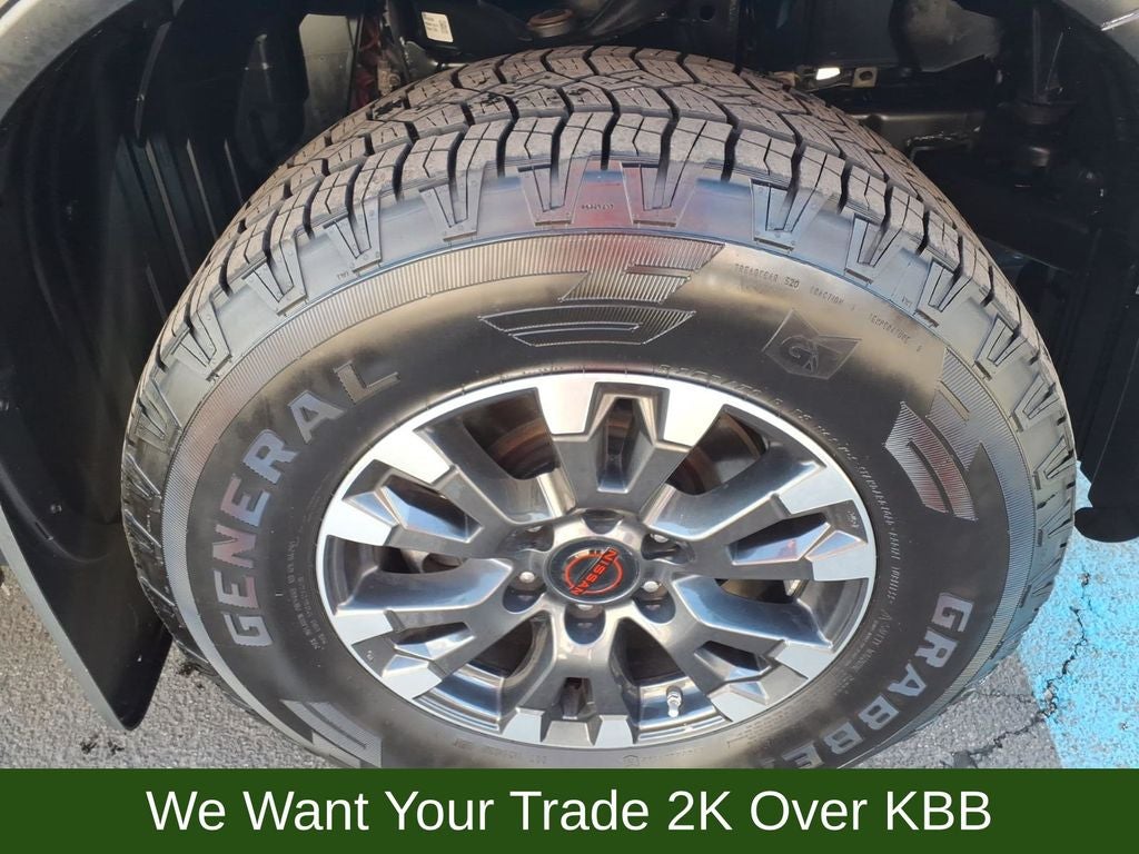 3.69 Axle Ratio, 4-Wheel Disc Brakes, 6 Speakers, ABS brakes, Air Conditioning, Alloy wheels, AM/FM radio: SiriusXM, Auto High-beam Headlights, Auto-dimming Rear-View mirror, Auto-leveling suspension, Automatic temperature control, Bed Assist Grip, Blind Spot Warning, Brake assist, Cloth Seat Trim w/Vinyl Bolsters, Compass, Delay-off headlights, Driver door bin, Driver vanity mirror, Dual front impact airbags, Dual front side impact airbags, Electronic Stability Control, Emergency communication system: NissanConnect Services, Fender Premium Audio System w/12 Speakers, Front anti-roll bar, Front Bucket Seats, Front Captain's Seats, Front Center Armrest, Front dual zone A/C, Front fog lights, Front reading lights, Front wheel independent suspension, Fully automatic headlights, Garage door transmitter: HomeLink, Heated door mirrors, Illuminated entry, Knee airbag, Leather steering wheel, Low tire pressure warning, Navigation system: NissanConnect Navigation, Occupant sensing airbag, Outside temperature display, Overhead airbag, Overhead console, Panic alarm, Passenger door bin, Passenger vanity mirror, Power door mirrors, Power driver seat, Power steering, Power windows, PRO-4X Badged Floor Mats, PRO-4X Illuminated Kick Plate, PRO-4X Mud Flaps, PRO-4X Rugged Step Boards, PRO-4X Utility Package, Radio data system, Radio: NissanConnect w/Navigation, Rain sensing wipers, Rear anti-roll bar, Rear Bumper Step w/Electronic Tailgate Lock, Rear Parking Sensors, Rear reading lights, Rear seat center armrest, Rear step bumper, Rear Underseat Storage, Rear window defroster, Remote keyless entry, Security system, Speed control, Speed-sensing steering, Speed-Sensitive Wipers, Split folding rear seat, Steering wheel mounted audio controls, Tachometer, Telescoping steering wheel, Tilt steering wheel, Traction control, Trip computer, Variably intermittent wipers, Voltmeter, Wheels: 18 x 8 Painted Dark Finish Alloy.