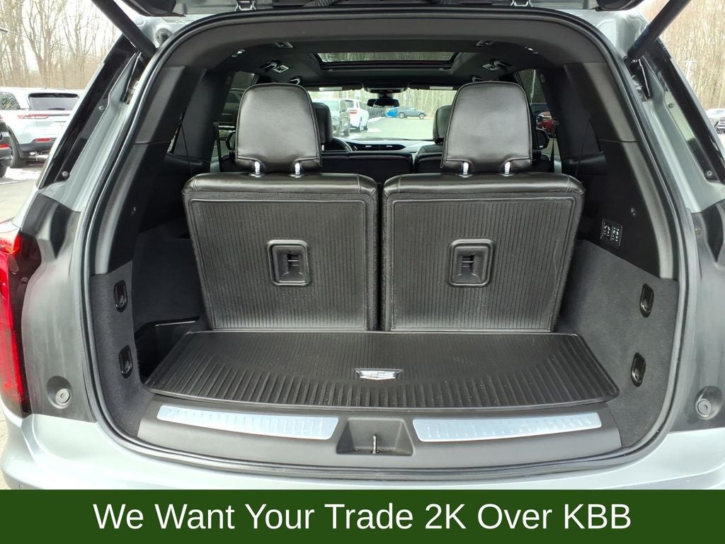 14 Speakers, 1st, 2nd & 3rd Rows All-Weather Floor Liners (LPO), 2-Way Power Driver Lumbar Control Seat Adjuster, 2-Way Power Passenger Lumbar Control Seat Adjuster, 3.49 Axle Ratio, 3rd row seats: split-bench, 4-Wheel Disc Brakes, 8-Way Power Driver Seat Adjuster, ABS brakes, Air Conditioning, All-Weather Integrated Cargo Liner (LPO), Alloy wheels, AM/FM radio: SiriusXM with 360L, Audio memory, Auto High-beam Headlights, Auto tilt-away steering wheel, Auto-dimming door mirrors, Auto-dimming Rear-View mirror, Automatic Emergency Braking, Automatic Stop/Start w/Disable, Automatic temperature control, Bose Performance Series Audio System, Brake assist, Bumpers: body-color, Compass, Delay-off headlights, Driver & Front Passenger Heated Seats, Driver door bin, Driver vanity mirror, Dual Driver Info Center Display Gauge Cluster, Dual front impact airbags, Dual front side impact airbags, Electronic Stability Control, Emergency communication system: OnStar and Cadillac connected services capable, Floor Liner Package (LPO), Four wheel independent suspension, Front & Rear Park Assist, Front anti-roll bar, Front Bucket Seats, Front Center Armrest, Front dual zone A/C, Front License Plate Bracket, Front reading lights, Fully automatic headlights, Garage door transmitter, Genuine wood dashboard insert, Genuine wood door panel insert, Heated door mirrors, Heated front seats, Heated rear seats, Heated steering wheel, Illuminated entry, Inside Rear-View Auto-Dimming Mirror, Knee airbag, Leather Seating Surfaces w/Mini-Perforated Inserts, Leather steering wheel, Low tire pressure warning, Memory seat, Navigation System, Occupant sensing airbag, Outside temperature display, Overhead airbag, Overhead console, Panic alarm, Passenger door bin, Passenger vanity mirror, Power door mirrors, Power driver seat, Power Liftgate, Power moonroof: UltraView, Power passenger seat, Power steering, Power windows, Premium Luxury Package 1SC, Radio data system, Radio: Cadillac User Experience w/Embedded Nav, Rain sensing wipers, Rear air conditioning, Rear anti-roll bar, Rear reading lights, Rear seat center armrest, Rear window defroster, Rear window wiper, Remote keyless entry, Ride & Handling Suspension, Roof rack: rails only, Security system, SiriusXM w/360L, Speed control, Speed-sensing steering, Split folding rear seat, Spoiler, Steering wheel memory, Steering wheel mounted audio controls, Tachometer, Teen Driver, Telescoping steering wheel, Tilt steering wheel, Traction control, Trip computer, Turn signal indicator mirrors, Variably intermittent wipers, Ventilated Driver & Front Passenger Seats, Ventilated front seats, Voltmeter, Wheels: 20 6-Split Spoke Alloy.