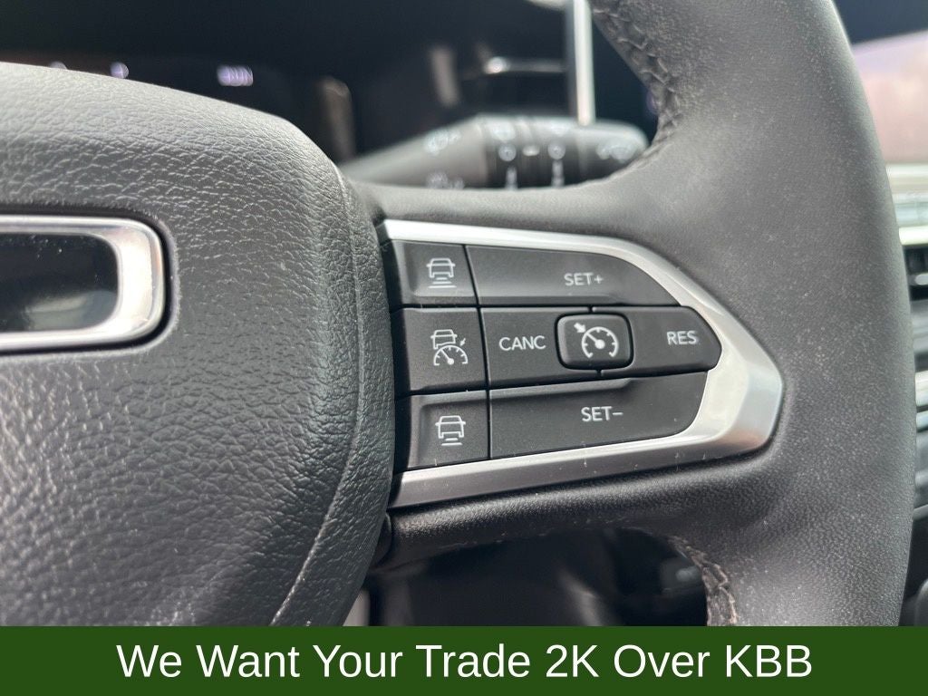 10.1 Touchscreen Display, 2nd Row USB Type A/C Charge Only, 3.73 Final Drive Ratio, 4-Wheel Disc Brakes, 4G LTE Wi-Fi Hot Spot, 6 Speakers, ABS brakes, Air Conditioning, Alexa Built-In, Alloy wheels, AM/FM radio: SiriusXM, Auto High-beam Headlights, Auto-dimming Rear-View mirror, Automatic temperature control, Black Day Light Opening Moldings, Body Color Door Claddings, Body Color Exterior Sill Moldings, Body Color Fascias, Body Color Roof, Body Color Wheel Flares, Brake assist, Bumpers: body-color, Cluster 10.25 TFT Color Display, Compass, Connected Travel & Traffic Services, Delay-off headlights, Disassociated Touchscreen Display, Driver door bin, Driver Seat Memory, Driver vanity mirror, Dual front impact airbags, Dual front side impact airbags, Electronic Stability Control, Elite Interior Group High Altitude, Emergency communication system: Jeep Connect, Foot Activated Open 'N Go Liftgate, For Details, Visit DriveUconnect.com, For More Info, Call 800-643-2112, Four wheel independent suspension, Front anti-roll bar, Front Bucket Seats, Front Center Armrest w/Storage, Front dual zone A/C, Front fog lights, Front reading lights, Fully automatic headlights, Global Telematics Box Module (TBM), Gloss Black Surround/Neutral Gray Rings, GPS Navigation, HD Radio, Heated door mirrors, Heated front seats, Heated steering wheel, High Altitude Package, Illuminated entry, Integrated Voice Command w/Bluetooth®, Knee airbag, Leather Shift Knob, Leather steering wheel, Leatherette Seats, LED Low/Highbeam Projector Headlamps, Liquid Chrome/Chainmail Hydro Accent, Low tire pressure warning, Neutral Gray Exterior Accents, Neutral Gray Exterior Badging, Occupant sensing airbag, Outside temperature display, Overhead airbag, Overhead console, Panic alarm, ParkView Rear Back-Up Camera, Passenger door bin, Passenger vanity mirror, Power 2-Way Passenger Lumbar Adjust, Power 8-Way Adjust Front Passenger Seat, Power door mirrors, Power driver seat, Power Front/Fixed Rear Full Sunroof, Power Liftgate, Power steering, Power windows, Premium Alpine Speaker System, Premium Leather Trimmed Bucket Seats, Premium LED Fog Lamps, Premium Taillamps, Quick Order Package 29G Limited, Radio: Uconnect 5 Nav w/10.1 Display, Radio: Uconnect 5 w/10.1 Display, Rain sensing wipers, Rear anti-roll bar, Rear seat center armrest, Rear window defroster, Rear window wiper, Remote keyless entry, Reversible Carpet/Vinyl Cargo Mat, Security system, SiriusXM Guardian - Included Trial (B), SiriusXM Radio Service, SiriusXM w/360L, Speed control, Split folding rear seat, Spoiler, Steering wheel mounted audio controls, Tachometer, Telescoping steering wheel, Tilt steering wheel, Traction control, Trip computer, Tungsten Accent Stitching, Turn signal indicator mirrors, Variably intermittent wipers, Ventilated Front Seats, Wheels: 18 x 7 Painted Diamond Cut Aluminum, Wheels: 19 x 7.5 Aluminum Painted.