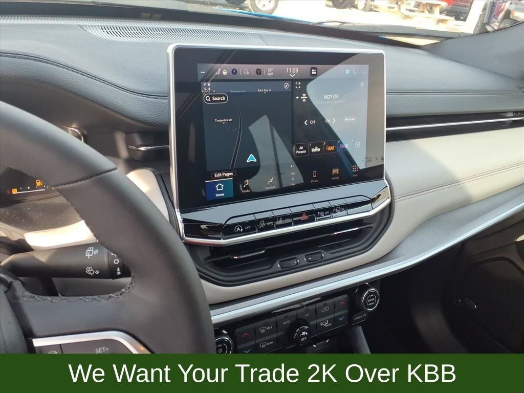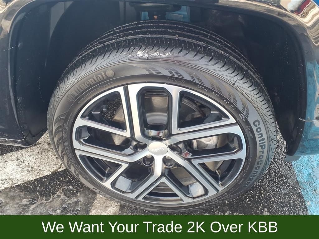 10.1 Touchscreen Display, 3.73 Final Drive Ratio, 360 Surround View Camera System, 4-Wheel Disc Brakes, 4G LTE Wi-Fi Hot Spot, 6 Speakers, ABS brakes, Active Driving Assist System, Air Conditioning, Alexa Built-In, Alloy wheels, AM/FM radio: SiriusXM, Auto High-beam Headlights, Auto-dimming Rear-View mirror, Automatic temperature control, Brake assist, Bumpers: body-color, Cluster 10.25 TFT Color Display, Compass, Connected Travel & Traffic Services, Delay-off headlights, Diamond Black Door Cladding, Diamond Black Exterior Sill, Diamond Black Fascias, Diamond Black Wheel Flares, Disassociated Touchscreen Display, Driver Assist Group I, Driver door bin, Driver Seat Memory, Driver vanity mirror, Dual front impact airbags, Dual front side impact airbags, Electronic Stability Control, Elite Group, Emergency communication system: Jeep Connect, Foot Activated Open 'N Go Liftgate, For Details, Visit DriveUconnect.com, For More Info, Call 800-643-2112, Four wheel independent suspension, Front anti-roll bar, Front Bucket Seats, Front Center Armrest w/Storage, Front dual zone A/C, Front fog lights, Front reading lights, Fully automatic headlights, Global Telematics Box Module (TBM), GPS Navigation, HD Radio, Heated door mirrors, Heated front seats, Heated steering wheel, Illuminated entry, Integrated Voice Command w/Bluetooth®, Knee airbag, Leather Shift Knob, Leather steering wheel, Leatherette Seats, LED Low/Highbeam Projector Headlamps, Low tire pressure warning, Occupant sensing airbag, Outside temperature display, Overhead airbag, Overhead console, P&P Park & Unpark Assist System, Panic alarm, ParkSense Fr/Rr Park Assist System, ParkView Rear Back-Up Camera, Passenger door bin, Passenger vanity mirror, Power 2-Way Passenger Lumbar Adjust, Power 8-Way Adjust Front Passenger Seat, Power door mirrors, Power driver seat, Power Front/Fixed Rear Full Sunroof, Power Liftgate, Power steering, Power windows, Premium Alpine Speaker System, Premium Leather Trimmed Bucket Seats, Premium LED Fog Lamps, Premium Taillamps, Quick Order Package 29G Limited, Radio: Uconnect 5 Nav w/10.1 Display, Radio: Uconnect 5 w/10.1 Display, Rain sensing wipers, Rear anti-roll bar, Rear seat center armrest, Rear window defroster, Rear window wiper, Remote keyless entry, Reversible Carpet/Vinyl Cargo Mat, Security system, SiriusXM Guardian - Included Trial (B), SiriusXM Radio Service, SiriusXM w/360L, Speed control, Split folding rear seat, Spoiler, Steering wheel mounted audio controls, Sun and Sound Group, Tachometer, Telescoping steering wheel, Tilt steering wheel, Traction control, Traffic Sign Recognition, Trip computer, Turn signal indicator mirrors, Universal Garage Door Opener, Variably intermittent wipers, Ventilated Front Seats, Wheels: 18 x 7 Painted Diamond Cut Aluminum, Wheels: 19 x 7.5 Painted Diamond Cut Aluminum, Wireless Charging Pad.