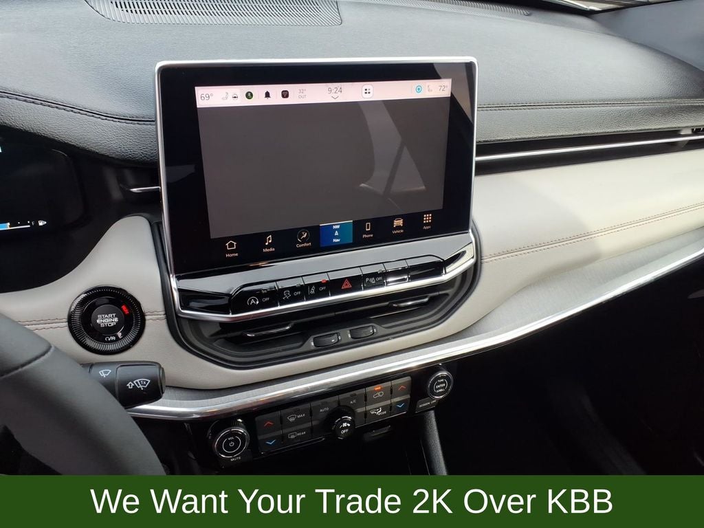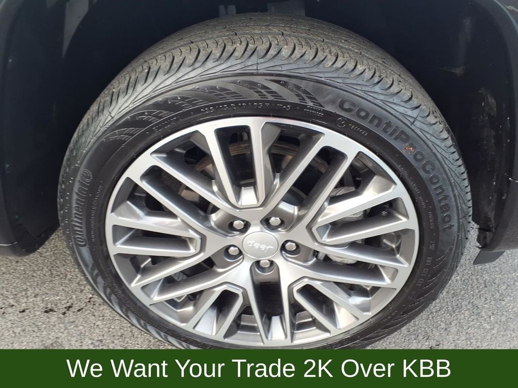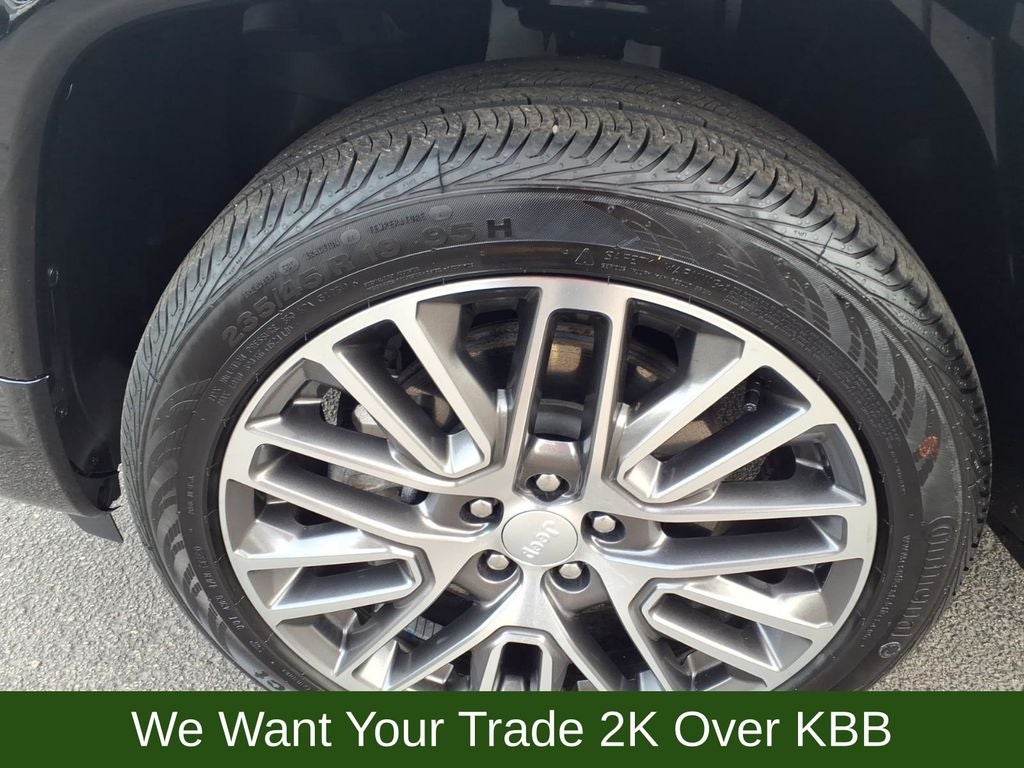10.1 Touchscreen Display, 3.73 Final Drive Ratio, 4-Wheel Disc Brakes, 4G LTE Wi-Fi Hot Spot, 6 Speakers, ABS brakes, Air Conditioning, Alexa Built-In, Alloy wheels, AM/FM radio: SiriusXM, Auto High-beam Headlights, Auto-dimming Rear-View mirror, Automatic temperature control, Brake assist, Bumpers: body-color, Cluster 10.25 TFT Color Display, Compass, Connected Travel & Traffic Services, Delay-off headlights, Diamond Black Door Cladding, Diamond Black Exterior Sill, Diamond Black Fascias, Diamond Black Wheel Flares, Disassociated Touchscreen Display, Driver door bin, Driver Seat Memory, Driver vanity mirror, Dual front impact airbags, Dual front side impact airbags, Electronic Stability Control, Elite Group, Emergency communication system: Jeep Connect, Foot Activated Open 'N Go Liftgate, For Details, Visit DriveUconnect.com, For More Info, Call 800-643-2112, Four wheel independent suspension, Front anti-roll bar, Front Bucket Seats, Front Center Armrest w/Storage, Front dual zone A/C, Front fog lights, Front reading lights, Fully automatic headlights, Global Telematics Box Module (TBM), GPS Navigation, HD Radio, Heated door mirrors, Heated front seats, Heated steering wheel, Illuminated entry, Integrated Voice Command w/Bluetooth®, Knee airbag, Leather Shift Knob, Leather steering wheel, Leatherette Seats, LED Low/Highbeam Projector Headlamps, Low tire pressure warning, Occupant sensing airbag, Outside temperature display, Overhead airbag, Overhead console, Panic alarm, ParkView Rear Back-Up Camera, Passenger door bin, Passenger vanity mirror, Power 2-Way Passenger Lumbar Adjust, Power 8-Way Adjust Front Passenger Seat, Power door mirrors, Power driver seat, Power Liftgate, Power steering, Power windows, Premium Leather Trimmed Bucket Seats, Premium LED Fog Lamps, Premium Taillamps, Quick Order Package 29G Limited, Radio: Uconnect 5 Nav w/10.1 Display, Radio: Uconnect 5 w/10.1 Display, Rain sensing wipers, Rear anti-roll bar, Rear seat center armrest, Rear window defroster, Rear window wiper, Remote keyless entry, Reversible Carpet/Vinyl Cargo Mat, Security system, SiriusXM Guardian - Included Trial (B), SiriusXM Radio Service, SiriusXM w/360L, Speed control, Split folding rear seat, Spoiler, Steering wheel mounted audio controls, Tachometer, Telescoping steering wheel, Tilt steering wheel, Traction control, Trip computer, Turn signal indicator mirrors, Variably intermittent wipers, Ventilated Front Seats, Wheels: 18 x 7 Painted Diamond Cut Aluminum, Wheels: 19 x 7.5 Painted Diamond Cut Aluminum.