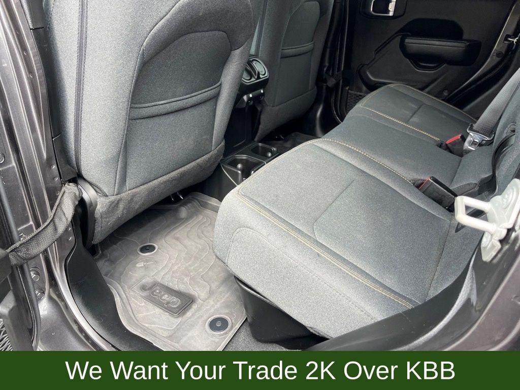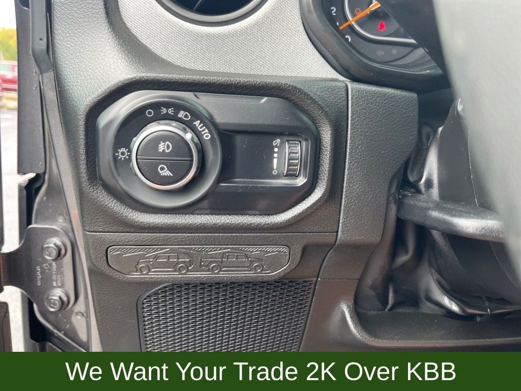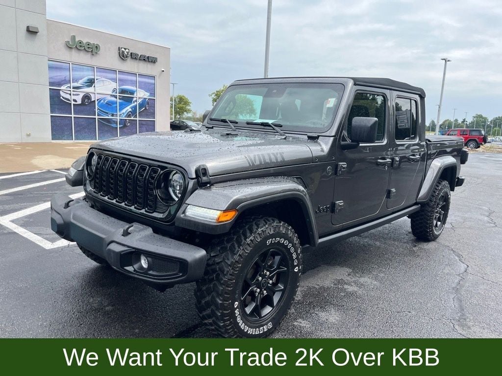 110 MPH Vehicle Max Speed Calibration, 12.3 Touchscreen Display, 240 Amp Alternator, 3.73 Rear Axle Ratio, 4-Wheel Disc Brakes, 4-Wheel Drive Decal, 4G LTE Wi-Fi Hot Spot, 8 Speakers, 97 MPH Vehicle Max Speed Calibration, ABS brakes, Advanced Brake Assist, Air Conditioning, Air Conditioning w/Auto Temperature Control, Alexa Built-In, AM/FM radio: SiriusXM with 360L, Apple CarPlay, Apple CarPlay/Android Auto, Automatic Headlamps, Auxiliary Switches, Black Grille, Body Color Fender Flares (2-Piece), Brake assist, Class IV Receiver Hitch, Cloth Low-Back Bucket Seats, Cluster 7.0 TFT Color Display, Compass, Connectivity - US/Canada, Convenience Group, Corning Gorilla Glass, Daytime Running Lamps LED Accents, Deep Tint Sunscreen Windows, Delay-off headlights, Disassociated Touchscreen Display, Driver door bin, Driver vanity mirror, Dual front impact airbags, Dual front side impact airbags, E-Locker Rear Axle, Electronic Stability Control, Emergency communication system: Jeep Connect, Emergency/Assistance Call, Enhanced Adaptive Cruise Control, Front 1-Touch Down Power Windows, Front anti-roll bar, Front Bucket Seats, Front Center Armrest w/Storage, Front Door Locks 2-Door Passive Entry, Front fog lights, Front Heavy Duty Red Accent Shock Absorbers, Front LED Fog Lamps, Front reading lights, Full Speed Forward Collision Warning Plus, Google Android Auto, Heated Front Seats, Heated Steering Wheel, Heavy-Duty Engine Cooling, Integrated Center Stack Radio, Integrated roll-over protection, LED Premium Reflector Headlamps, LED Taillamps, Low tire pressure warning, Manufacturer's Statement of Origin (DISC), Mold In Color Bumper w/Gloss Black, MOPAR All-Weather Slush Mats, MOPAR Spray In Bedliner, Normal Duty Suspension, Occupant sensing airbag, Off-Road Plus Mode, Outside temperature display, Overhead airbag, ParkView Rear Back-Up Camera, Passenger door bin, Passenger vanity mirror, Power Heated Mirrors, Power steering, Power Tailgate Lock, Premium Wrapped Steering Wheel, Protection Sill Rails, Quick Order Package 24W Willys, Radio data system, Radio: Uconnect 5 w/12.3 Display, Rear anti-roll bar, Rear Heavy Duty Red Accent Shock Absorbers, Rear reading lights, Remote Keyless Entry, Remote Start System, Security Alarm, SiriusXM Radio Service, SiriusXM w/360L, Speed control, Speed Sensitive Power Locks, Split folding rear seat, Steering wheel mounted audio controls, Sun Visors w/Illuminated Vanity Mirrors, Tachometer, Telescoping steering wheel, Tilt steering wheel, Traction control, Trailer Hitch Zoom, Trip computer, Universal Garage Door Opener, USB Host Flip, Variably intermittent wipers, Voltmeter, Wheels: 17 x 7.5 Black Steel Styled, Wheels: 17 x 7.5 Painted Black, Willy's Suspension, Willys Hood Decal.