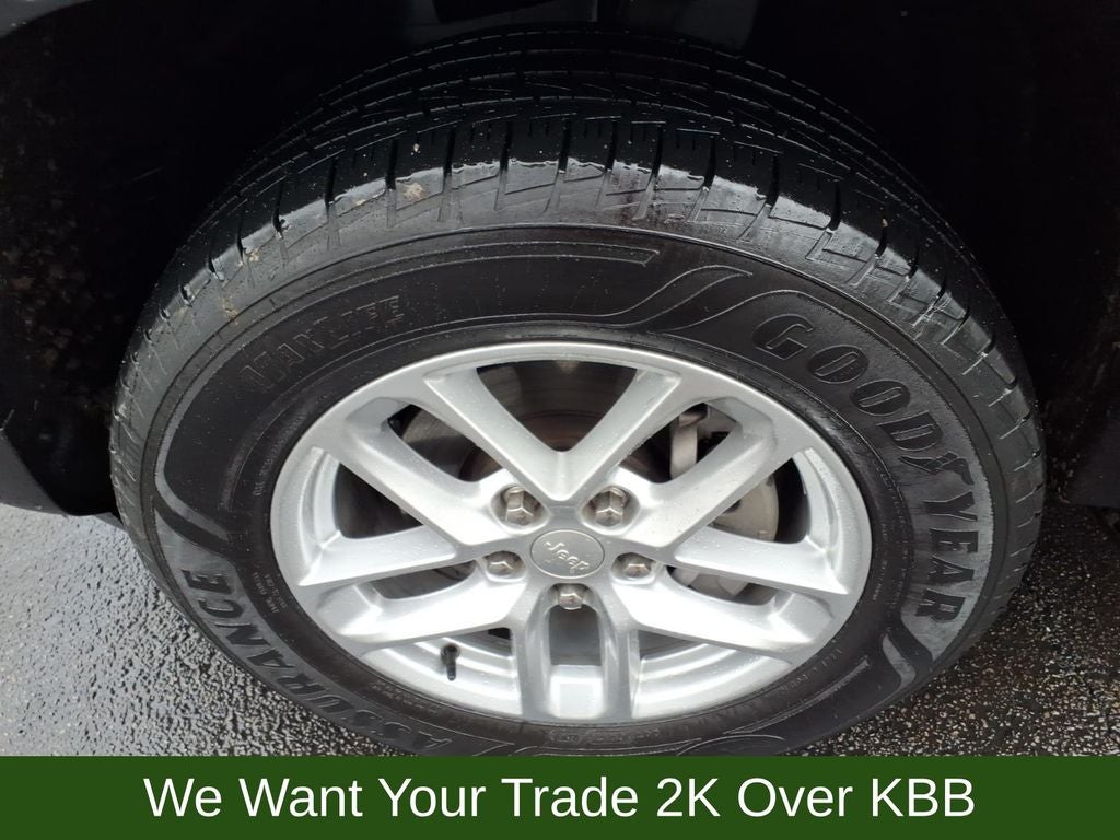 3.45 Rear Axle Ratio, 4-Wheel Disc Brakes, 6 Speakers, ABS brakes, Air Conditioning, Alloy wheels, Anti-whiplash front head restraints, Automatic temperature control, Brake assist, Bumpers: body-color, Cloth Seats, Compass, Delay-off headlights, Driver door bin, Driver vanity mirror, Dual front impact airbags, Dual front side impact airbags, Electronic Stability Control, Emergency communication system, Four wheel independent suspension, Front anti-roll bar, Front Bucket Seats, Front Center Armrest w/Storage, Front dual zone A/C, Front reading lights, Fully automatic headlights, Heated door mirrors, Illuminated entry, Knee airbag, Laredo X, Low tire pressure warning, Normal Duty Suspension, Occupant sensing airbag, Outside temperature display, Overhead airbag, Overhead console, Panic alarm, ParkView Rear Back-Up Camera, Passenger door bin, Passenger vanity mirror, Power door mirrors, Power driver seat, Power steering, Power Sunroof, Power windows, Quick Order Package 23D Laredo X, Radio data system, Radio: Uconnect 5 w/8.4 Display, Rear anti-roll bar, Rear reading lights, Rear window defroster, Rear window wiper, Remote keyless entry, Security system, Speed control, Speed-Sensitive Wipers, Split folding rear seat, Spoiler, Steering wheel mounted audio controls, Tachometer, Telescoping steering wheel, Tilt steering wheel, Traction control, Trip computer, Variably intermittent wipers, Voltmeter, Wheels: 17 x 6.5 Fully Painted Aluminum, Wheels: 18 x 8 Fully Painted Aluminum.