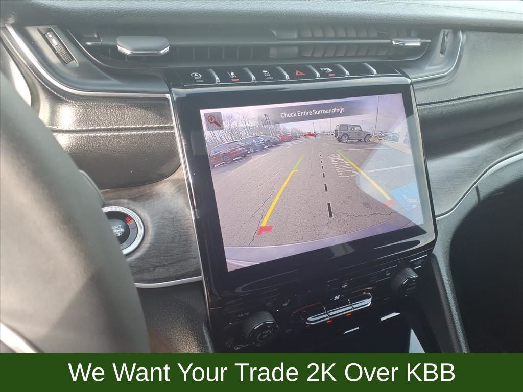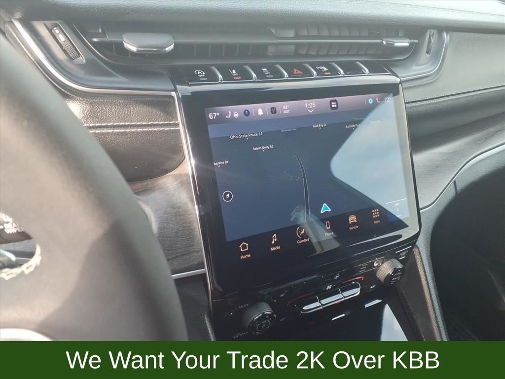 3.45 Rear Axle Ratio, 4-Wheel Disc Brakes, 6 Speakers, ABS brakes, Active Noise Control System, Air Conditioning, Alloy wheels, AM/FM radio: SiriusXM with 360L, Anti-whiplash front head restraints, Audio memory, Auto High-beam Headlights, Automatic temperature control, Brake assist, Bumpers: body-color, Capri Leatherette Seats, Compass, Delay-off headlights, Driver door bin, Driver vanity mirror, Dual front impact airbags, Dual front side impact airbags, Dual-Pane Panoramic Sunroof, Electronic Stability Control, Emergency communication system, Four wheel independent suspension, Front anti-roll bar, Front Bucket Seats, Front Center Armrest w/Storage, Front dual zone A/C, Front fog lights, Front License Plate Bracket, Front reading lights, Fully automatic headlights, Garage door transmitter, Heated door mirrors, Heated front seats, Heated rear seats, Heated steering wheel, Illuminated entry, Knee airbag, Low tire pressure warning, Memory seat, Navigation System, Normal Duty Suspension, Occupant sensing airbag, Outside temperature display, Overhead airbag, Overhead console, Panic alarm, ParkView Rear Back-Up Camera, Passenger door bin, Passenger vanity mirror, Power door mirrors, Power driver seat, Power Liftgate, Power passenger seat, Power steering, Power windows, Quick Order Package 22E, Radio data system, Radio: Uconnect 5 Nav w/10.1 Display, Rear anti-roll bar, Rear reading lights, Rear window defroster, Rear window wiper, Remote keyless entry, Security system, Speed control, Speed-Sensitive Wipers, Split folding rear seat, Spoiler, Steering wheel mounted audio controls, Tachometer, Telescoping steering wheel, Tilt steering wheel, Traction control, Trip computer, Turn signal indicator mirrors, Variably intermittent wipers, Voltmeter, Wheels: 18 x 8 Polished/Painted Aluminum.