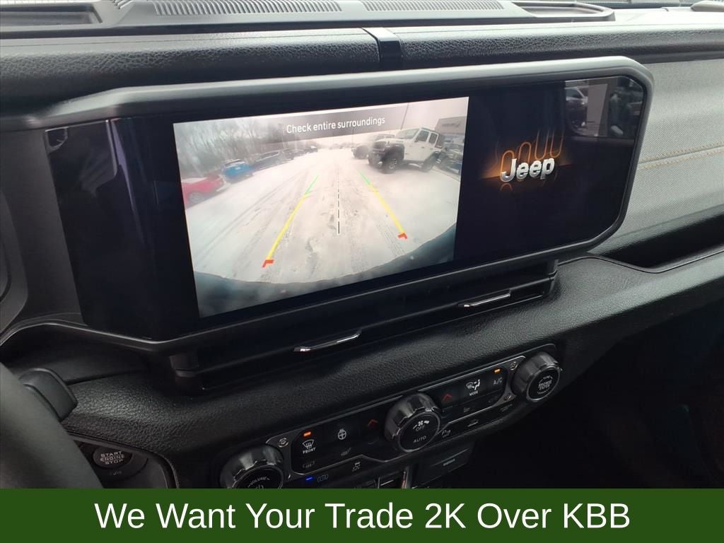 2-Door Passive Entry, Front Door Locks, 4-Wheel Disc Brakes, 4xe 4-Wheel Drive Swing Gate Decal, 7 & 4 Pin Wiring Harness, 8 Speakers, 97 MPH Vehicle Max Speed Calibration, ABS brakes, Air Conditioning, Alloy wheels, Alpine Premium Audio System, Apple CarPlay/Android Auto, Auto High Beam Headlamp Control, Automatic temperature control, Auxiliary Switches, Black 3-Piece Hard Top, Black Grille, Blind Spot & Cross Path Detection, Brake assist, Cloth Low-Back Bucket Seats, Compass, Convenience Group, Conventional Differential Front Axle, Delay-off headlights, Driver door bin, Driver vanity mirror, Dual front impact airbags, Dual front side impact airbags, E-Locker Rear Axle, Electronic Stability Control, Emergency/Assistance Call, EV/PHEV Vehicle To Load, Freedom Panel Storage Bag, Front anti-roll bar, Front Bucket Seats, Front Center Armrest w/Storage, Front dual zone A/C, Front fog lights, Front LED Fog Lamps, Front License Plate Bracket, Front reading lights, Fully automatic headlights, Heated door mirrors, Heated Front Seats, Heated Steering Wheel, Illuminated entry, Integrated roll-over protection, LED Premium Reflector Headlamps, LED Taillamps, Low tire pressure warning, Molded in Color Rubicon Highline Flare, MOPAR All-Weather Floor Mats, No Soft Top, Occupant sensing airbag, Off-Road Plus Mode, Outside temperature display, Overhead airbag, Panic alarm, ParkSense Rear Park Assist System, ParkView Rear Back-Up Camera, Passenger door bin, Passenger vanity mirror, Power door mirrors, Power steering, Power windows, Quick Order Package 29W Willys, Radio data system, Radio: Uconnect 5 w/12.3 Display, Rear anti-roll bar, Rear reading lights, Rear Window Defroster, Rear Window Wiper/Washer, Remote keyless entry, Remote Start System, Safety Group, Security system, Speed control, Split folding rear seat, Sport Suspension, Steering wheel mounted audio controls, Tachometer, Technology Group, Telescoping steering wheel, Tilt steering wheel, Traction control, Trip computer, Universal Garage Door Opener, Variably intermittent wipers, Voltmeter, Wheels: 17 x 7.5 Painted Black, Wheels: 20 x 8 Machined/Painted Gray, Willy's Suspension, Willys, Willys 4xe Hood Decal.