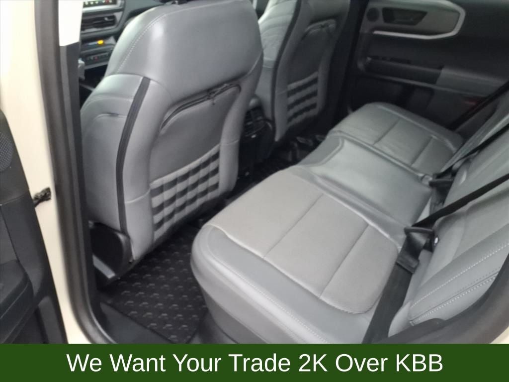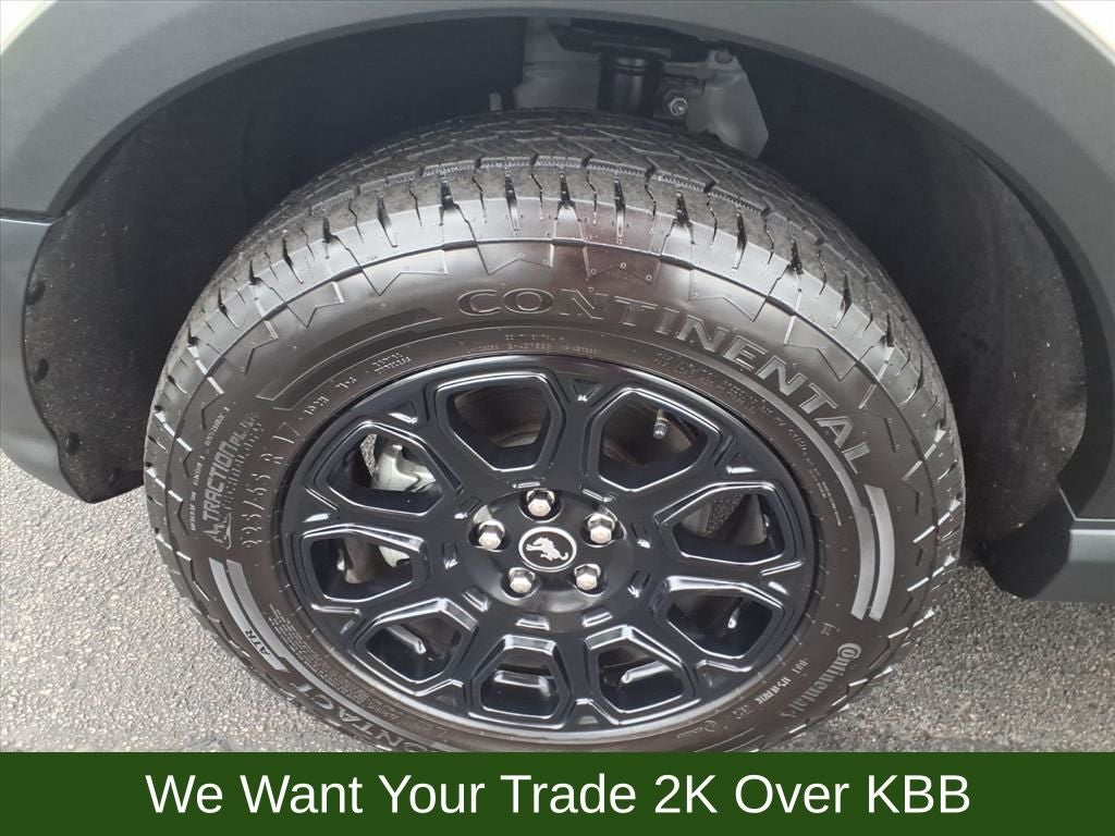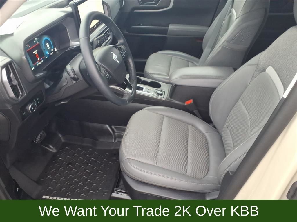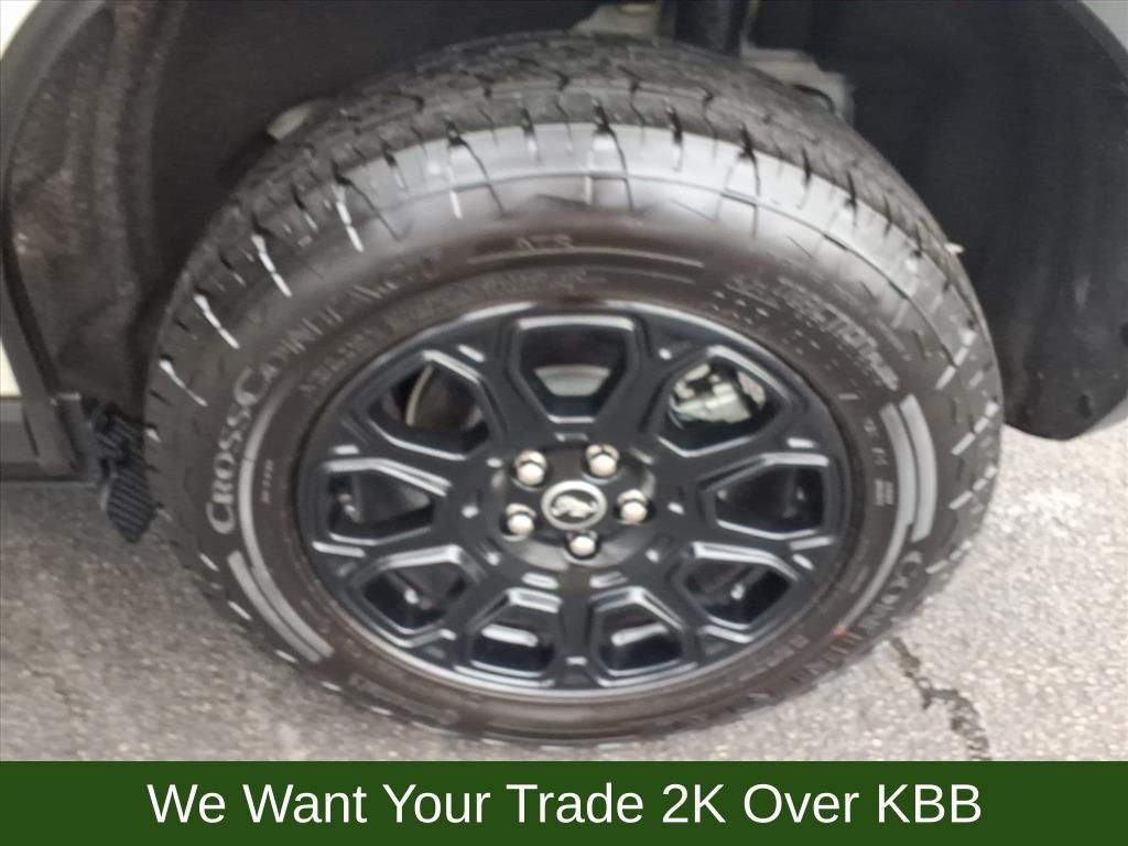 4-Wheel Disc Brakes, 6 Speakers, ABS brakes, Air Conditioning, Alloy wheels, AM/FM radio: SiriusXM, AM/FM Stereo, Auto High-beam Headlights, Auto-dimming Rear-View mirror, Automatic temperature control, B&O Sound System by Bang & Olufsen, Badlands Tech Package, Brake assist, Cargo Management System (Shelf/Divider/Table), Cargo Mat, Compass, Connected Navigation, Delay-off headlights, Driver door bin, Driver vanity mirror, Dual front impact airbags, Dual front side impact airbags, Electronic Stability Control, Emergency communication system: SYNC 4 911 Assist, Equipment Group 400A, Four wheel independent suspension, Front & Rear Floor Liners w/o Carpet Mats, Front anti-roll bar, Front Bucket Seats, Front Center Armrest, Front fog lights, Front reading lights, Fully automatic headlights, Garage door transmitter, HD Radio, Heated door mirrors, Heated front seats, Heated steering wheel, Illuminated entry, Knee airbag, Leather Trimmed Front Bucket Seats, Low tire pressure warning, Memory seat, Occupant sensing airbag, Outside temperature display, Overhead airbag, Overhead console, Panic alarm, Passenger door bin, Passenger vanity mirror, Power door mirrors, Power driver seat, Power Moonroof, Power passenger seat, Power steering, Power windows, Radio data system, Rear anti-roll bar, Rear reading lights, Rear seat center armrest, Rear window defroster, Rear window wiper, Remote keyless entry, Security system, SiriusXM, Speed control, Speed-sensing steering, Speed-Sensitive Wipers, Split folding rear seat, Steering wheel mounted audio controls, SYNC 4 w/Enhanced Voice Recognition, Tachometer, Telescoping steering wheel, Tilt steering wheel, Traction control, Trip computer, Variably intermittent wipers, Wheels: 17 Matte Black-Painted Aluminum.