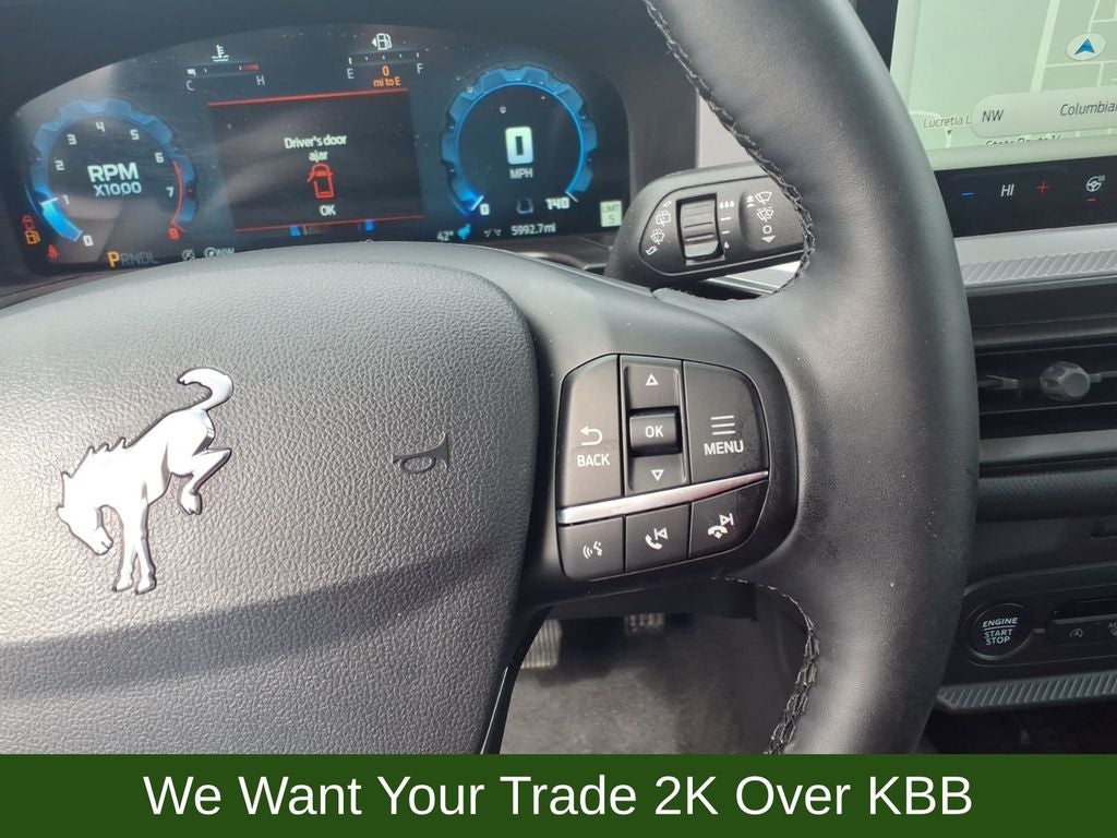 360-Degree Camera w/Trail & Split View, 4-Wheel Disc Brakes, 6 Speakers, ABS brakes, Air Conditioning, Alloy wheels, AM/FM radio: SiriusXM, AM/FM Stereo, Auto High-beam Headlights, Auto-dimming Rear-View mirror, Automatic temperature control, B&O Sound System by Bang & Olufsen, Brake assist, Compass, Connected Navigation, Delay-off headlights, Driver door bin, Driver vanity mirror, Dual front impact airbags, Dual front side impact airbags, Electronic Stability Control, Emergency communication system: SYNC 4 911 Assist, Equipment Group 300A, Four wheel independent suspension, Front & Rear Floor Liners w/o Carpet Mats, Front anti-roll bar, Front Bucket Seats, Front Center Armrest, Front Driver/Passenger Seat Back Map Pockets, Front dual zone A/C, Front fog lights, Front Parking Sensors, Front reading lights, Fully automatic headlights, Garage door transmitter, HD Radio, Heated door mirrors, Heated front seats, Heated steering wheel, Illuminated entry, Knee airbag, Low tire pressure warning, Memory seat, Occupant sensing airbag, Outer Banks Tech Package+, Outside temperature display, Overhead airbag, Overhead console, Panic alarm, Passenger door bin, Passenger vanity mirror, Power door mirrors, Power driver seat, Power passenger seat, Power steering, Power windows, Premium Trimmed Front Bucket Seats w/Ebony/Roast, Radio data system, Rain sensing wipers, Rear anti-roll bar, Rear Parking Sensors, Rear reading lights, Rear seat center armrest, Rear window defroster, Rear window wiper, Remote keyless entry, Reverse Brake Assist, Security system, SiriusXM, Speed control, Speed-sensing steering, Speed-Sensitive Wipers, Split folding rear seat, Steering wheel mounted audio controls, SYNC 4 w/Enhanced Voice Recognition, Tachometer, Telescoping steering wheel, Tilt steering wheel, Topo Graphic Package, Traction control, Trip computer, Variably intermittent wipers, Wheels: 18 Ebony Black-Painted Aluminum.