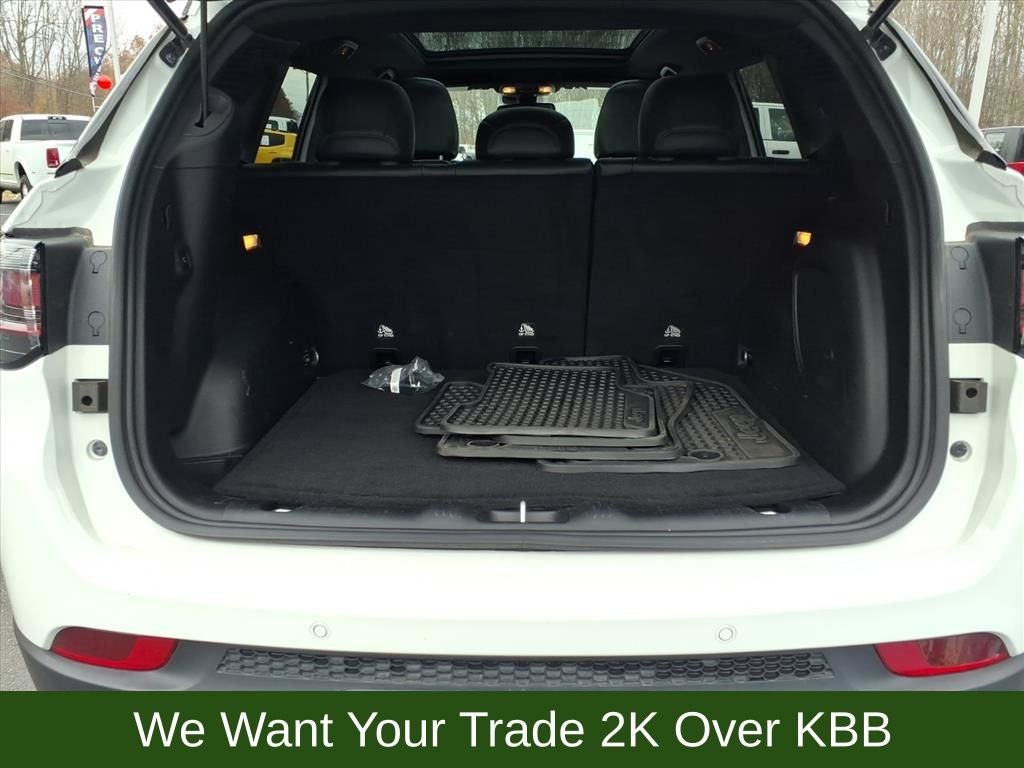 10.1 Touchscreen Display, 2nd Row USB Type A/C Charge Only, 4 Pin Wiring Harness, 4-Wheel Disc Brakes, 4.398 Final Drive Ratio, 6 Speakers, ABS brakes, Air Conditioning, Alexa Built-In, Alloy wheels, AM/FM radio: SiriusXM, Apple CarPlay/Android Auto, Auto High-beam Headlights, Auto-dimming Rear-View mirror, Automatic temperature control, Brake assist, Bumpers: body-color, Class III Receiver Hitch, Cluster 10.25 TFT Color Display, Compass, Connected Travel & Traffic Services, Delay-off headlights, Driver door bin, Driver Seat Memory, Driver vanity mirror, Dual front impact airbags, Dual front side impact airbags, Electronic Stability Control, Emergency communication system: Jeep Connect, Foot Activated Open 'N Go Liftgate, Four wheel independent suspension, Front anti-roll bar, Front Bucket Seats, Front Center Armrest w/Storage, Front dual zone A/C, Front fog lights, Front reading lights, Fully automatic headlights, GPS Navigation, HD Radio, Heated door mirrors, Heated Front Seats, Heated Steering Wheel, Illuminated entry, Integrated Voice Command w/Bluetooth®, Knee airbag, Leather Shift Knob, Leather steering wheel, LED Low/Highbeam Projector Headlamps, Low tire pressure warning, Occupant sensing airbag, Outside temperature display, Overhead airbag, Overhead console, Panic alarm, ParkView Rear Back-Up Camera, Passenger door bin, Passenger vanity mirror, Power 2-Way Driver Lumbar Adjust, Power 2-Way Passenger Lumbar Adjust, Power 8-Way Adjust Front Passenger Seat, Power Adjust 8-Way Driver Seat, Power door mirrors, Power Front/Fixed Rear Full Sunroof, Power Liftgate, Power steering, Power windows, Premium Alpine Speaker System, Premium audio system: UConnect 5, Premium Cloth/Leather Trim Bucket Seats, Premium Leather Trimmed Bucket Seats, Premium LED Fog Lamps, Premium Taillamps, Quick Order Package 29E, Radio: Uconnect 5 w/10.1 Display, Rain sensing wipers, Rear anti-roll bar, Rear seat center armrest, Rear window defroster, Rear window wiper, Remote keyless entry, Remote Start System, Reversible Carpet/Vinyl Cargo Mat, Security system, SiriusXM w/360L, Speed control, Split folding rear seat, Spoiler, Steering wheel mounted audio controls, Sun & Sound Group, Tachometer, Telescoping steering wheel, Tilt steering wheel, Traction control, Trailer Tow Group, Trailhawk Elite Group, Trip computer, Turn signal indicator mirrors, Variably intermittent wipers, Ventilated Front Seats, Wheels: 17 x 6.5 Painted Black Aluminum, Windshield Wiper De-Icer.