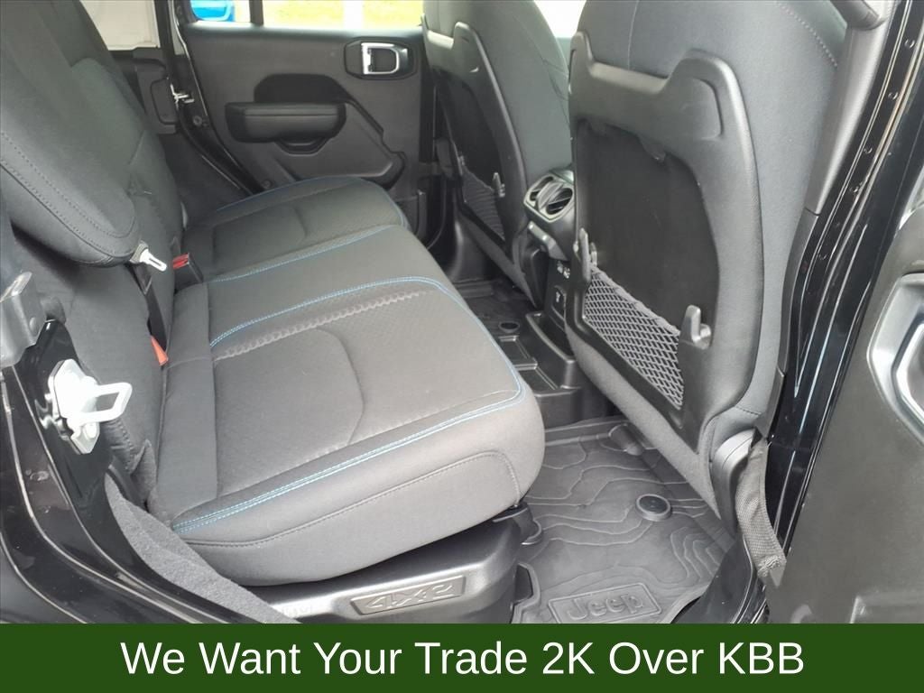 2.0L I4 DOHC, Auto High Beam Headlamp Control, Blind Spot & Cross Path Detection, Brake assist, Convenience Group, Electronic Stability Control, Heated Front Seats, Heated Steering Wheel, ParkSense Rear Park Assist System, Power steering, Power windows, Quick Order Package 29V Rubicon 4xe, Remote keyless entry, Remote Start System, Safety Group, Steering wheel mounted audio controls, Universal Garage Door Opener.