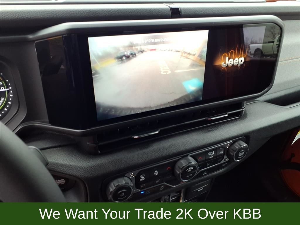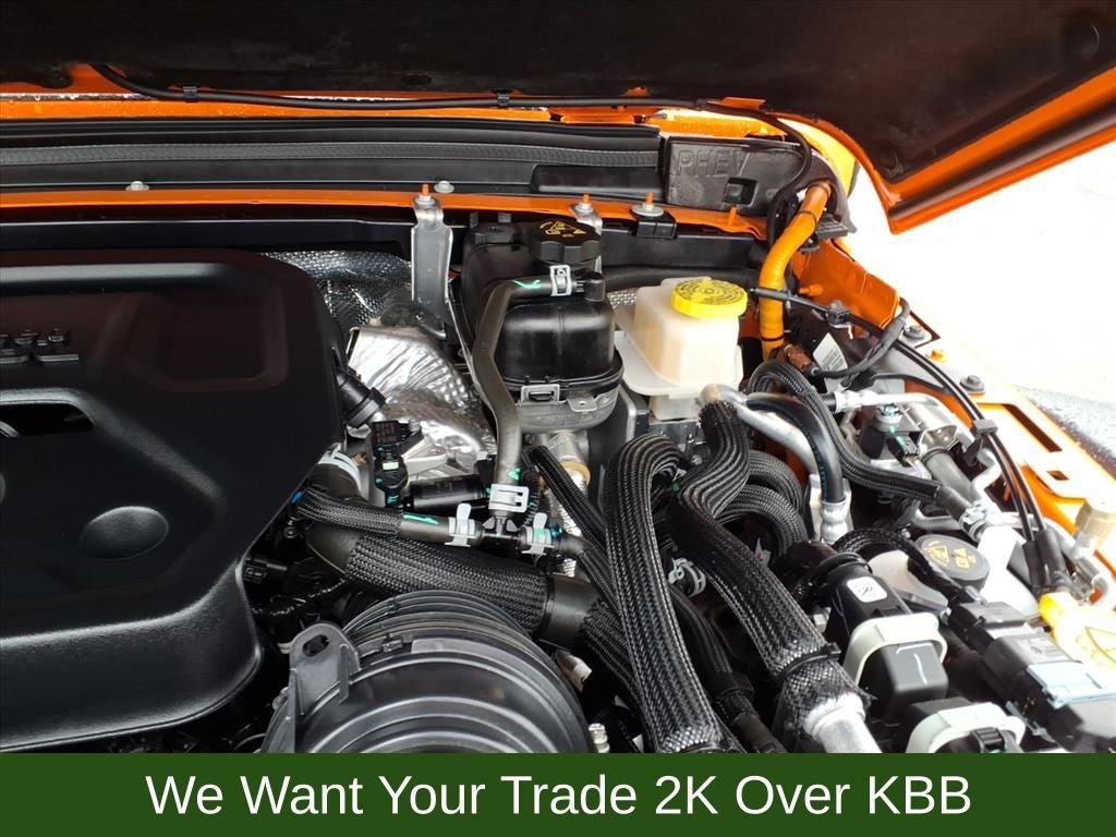 2-Door Passive Entry, Front Door Locks, 4-Wheel Disc Brakes, 4-Wheel Drive Swing Gate Decal, 7 & 4 Pin Wiring Harness, 8 Speakers, 97 MPH Vehicle Max Speed Calibration, ABS brakes, Air Conditioning, Air Conditioning w/Auto Temperature Control, Air Filtering, Alloy wheels, AM/FM radio: SiriusXM, Apple CarPlay/Android Auto, Auxiliary Switches, Black Grille, Brake assist, Class II Receiver Hitch, Cloth Low-Back Bucket Seats, Compass, Convenience Group, Conventional Differential Front Axle, Delay-off headlights, Driver door bin, Driver vanity mirror, Dual front impact airbags, Dual front side impact airbags, E-Locker Rear Axle, Electronic Stability Control, Emergency/Assistance Call, Front anti-roll bar, Front Bucket Seats, Front Center Armrest w/Storage, Front fog lights, Front LED Fog Lamps, Front reading lights, Fully automatic headlights, Heated door mirrors, Heated Front Seats, Heated Steering Wheel, Illuminated entry, Integrated roll-over protection, LED Premium Reflector Headlamps, Low tire pressure warning, Molded in Color Rubicon Highline Flare, MOPAR All-Weather Floor Mats, Occupant sensing airbag, Off-Road Plus Mode, Outside temperature display, Overhead airbag, Panic alarm, ParkView Rear Back-Up Camera, Passenger door bin, Passenger vanity mirror, Power door mirrors, Power steering, Power Top Quarter Window Storage Bag, Power windows, Quick Order Package 29W Willys 4xe, Radio data system, Radio: Uconnect 5 w/12.3 Display, Rear anti-roll bar, Rear reading lights, Rear Window Defroster, Rear Window Wiper/Washer, Remote keyless entry, Remote Start System, Removable Rear Quarter Windows, Security system, Sky 1-Touch Power Top, Speed control, Split folding rear seat, Sport Suspension, Steering wheel mounted audio controls, Tachometer, Telescoping steering wheel, Tilt steering wheel, Traction control, Trip computer, Universal Garage Door Opener, Variably intermittent wipers, Voltmeter, Wheels: 17 x 7.5 Painted Black, Wheels: 20 x 8 Machined/Painted Gray, Willy's Suspension, Willys 4xe Hood Decal.